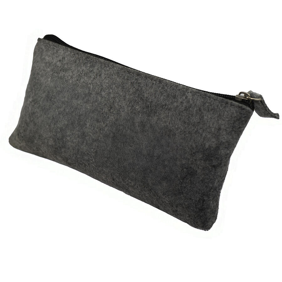 Плоский пенал-косметичка из RPET фетра. Цвет темно-серый. Размер 20 х 11 см. Плотность 3 мм. Виды нанесения: обычный трансфет и DTF.