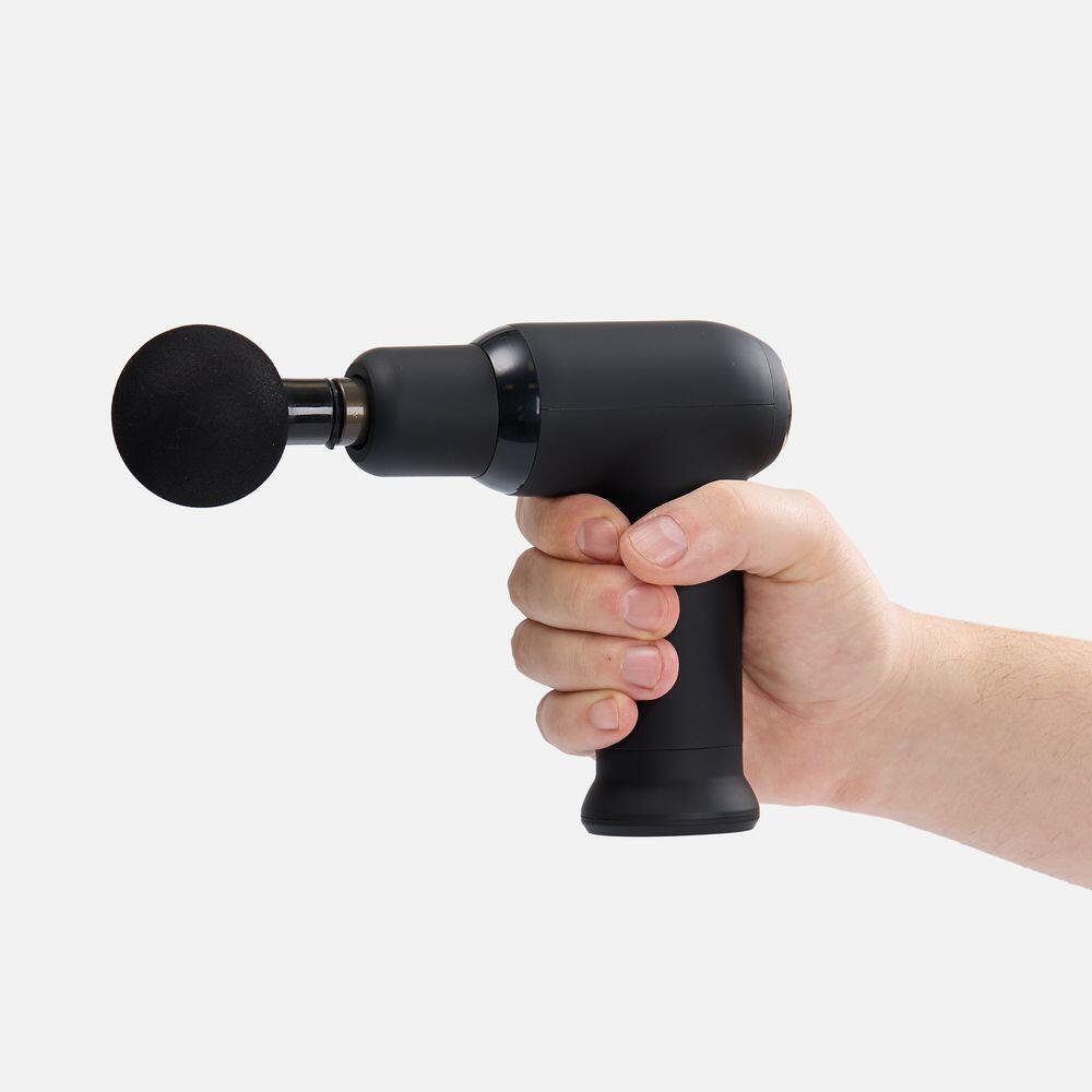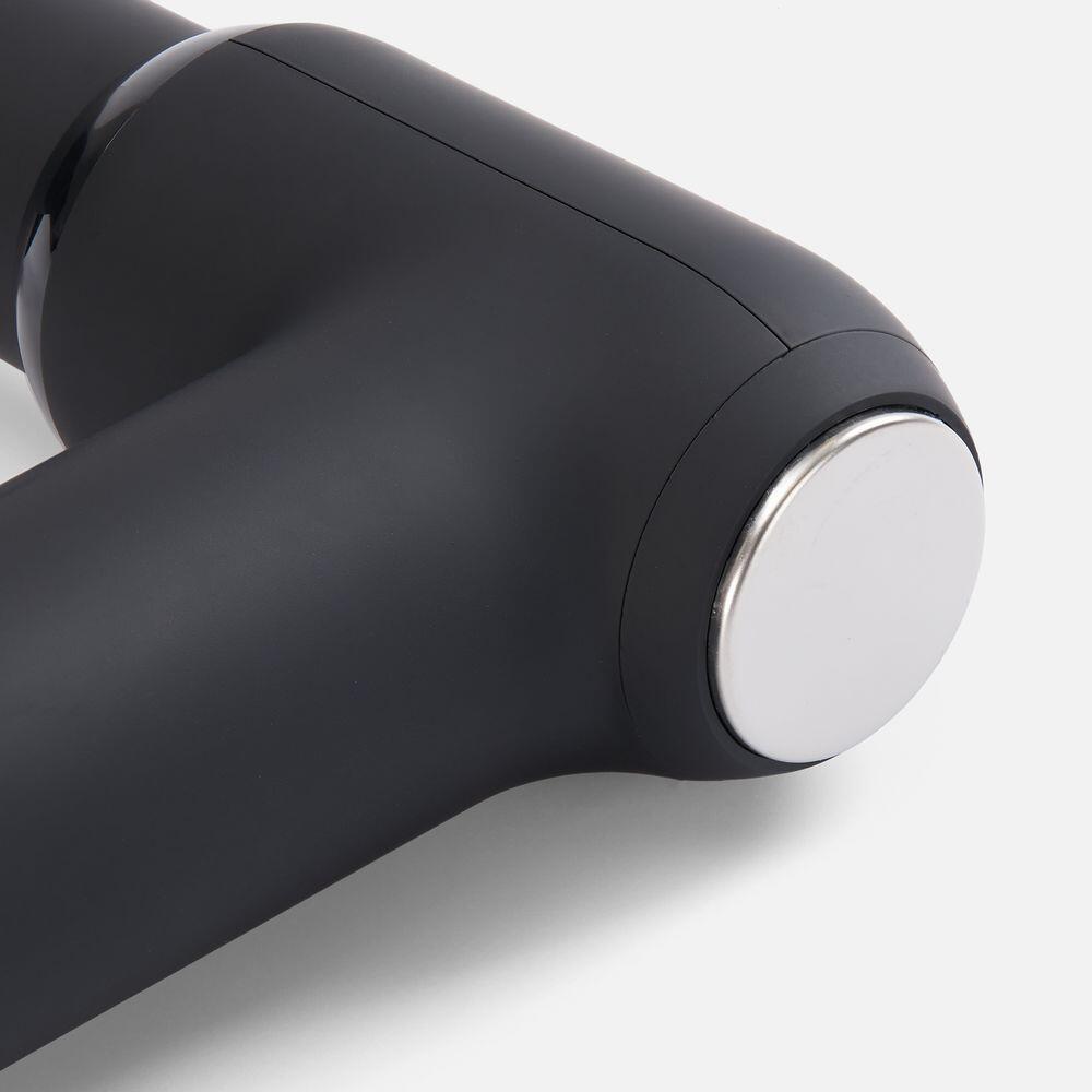 Конструкция массажера выполнена в форме мини-пистолета с тактильно приятным матовыми покрытием и эргономичной ручкой: его удобно держать и просто использовать благодаря кнопочной системе управления.