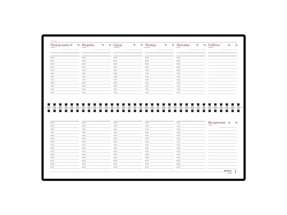 Недатированный планинг размером 305*130 мм состоит из 128 страниц с креплением на металлическом гребне. Используется высококачественная белая бумага плотностью 70 г/км. Полезная справочная информация на 14 страницах пригодится в бизнесе и повседневной жизни (телефонные коды России и мира, праздники, единицы измерения, таблицы размеров, часовых поясов и т.д.)