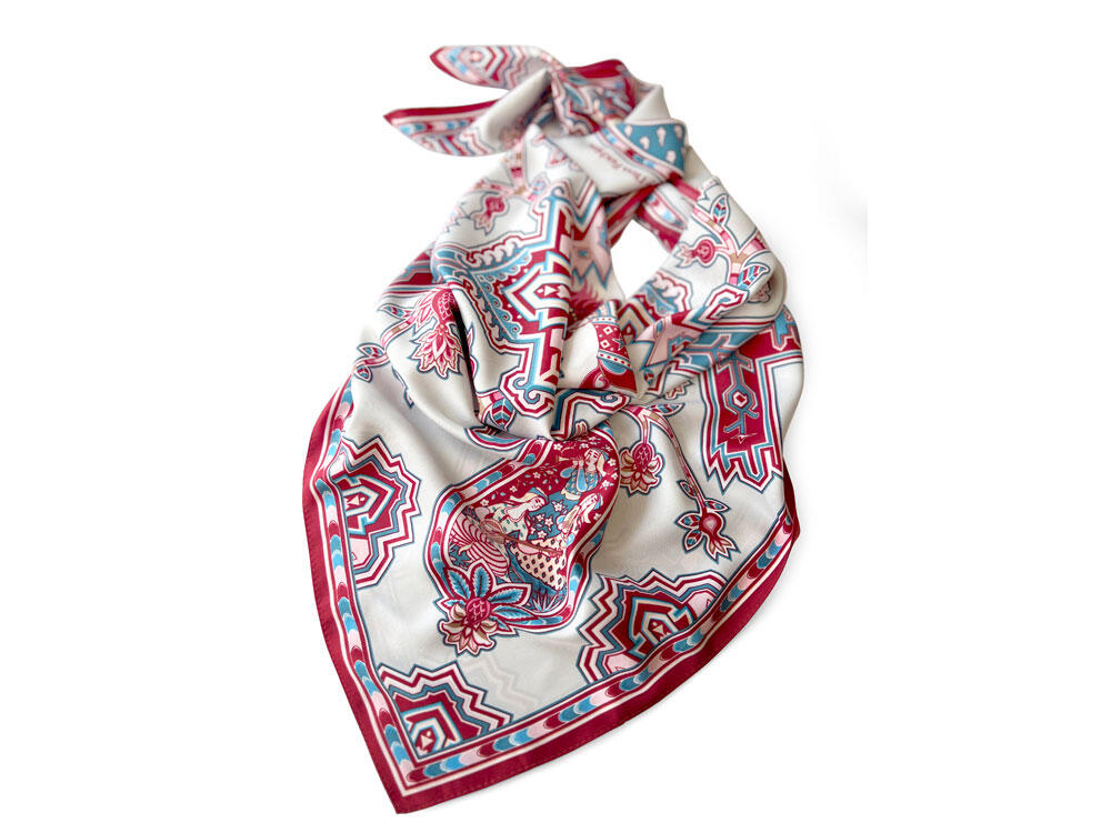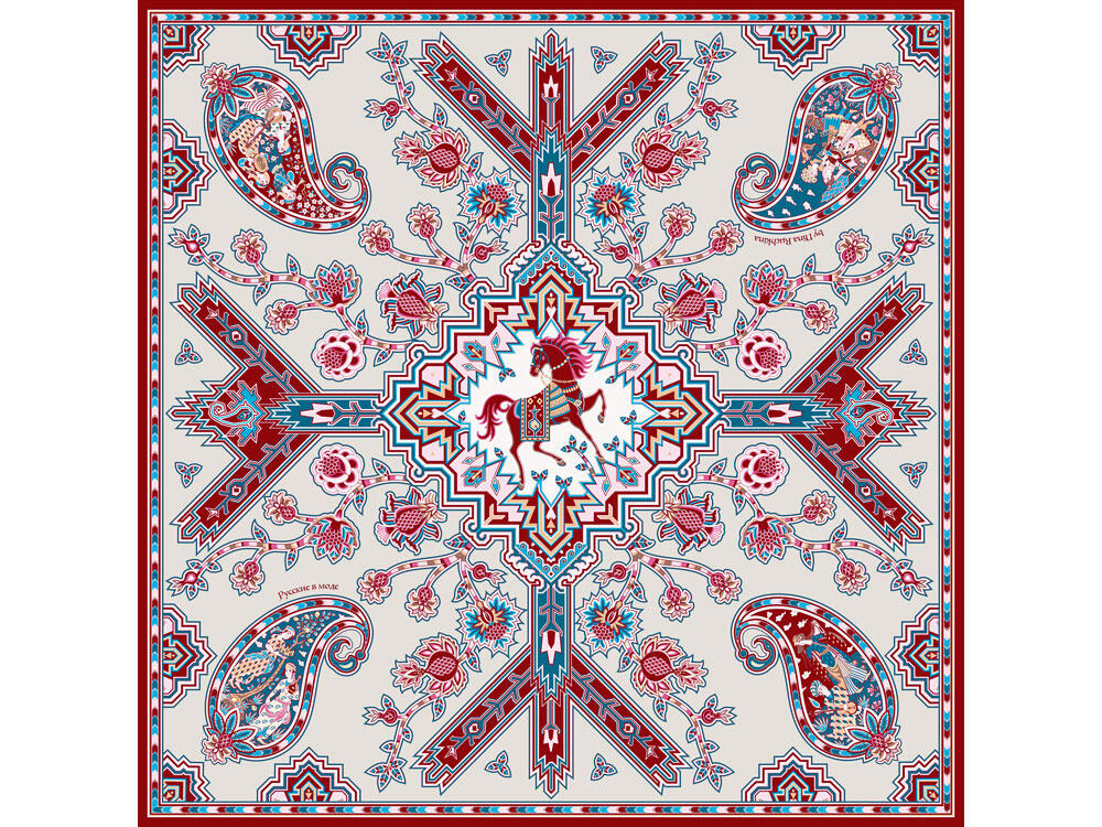 Дизайн платка "Кавказский скакун" от бренда “Русские в моде” by Nina Ruchkina навеян прекрасным и загадочным Востоком, вдохновляющим творцов всего мира.