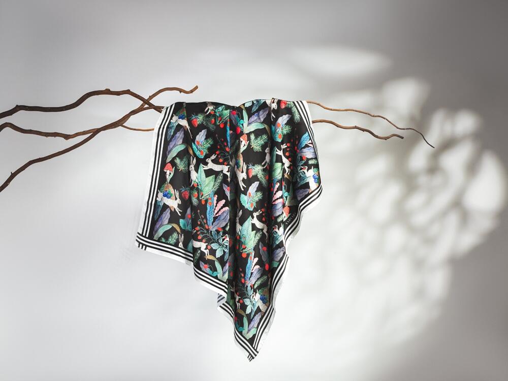 Платок из искусственного шелка размером 70*70 см., с авторским принтом «Зайцы».