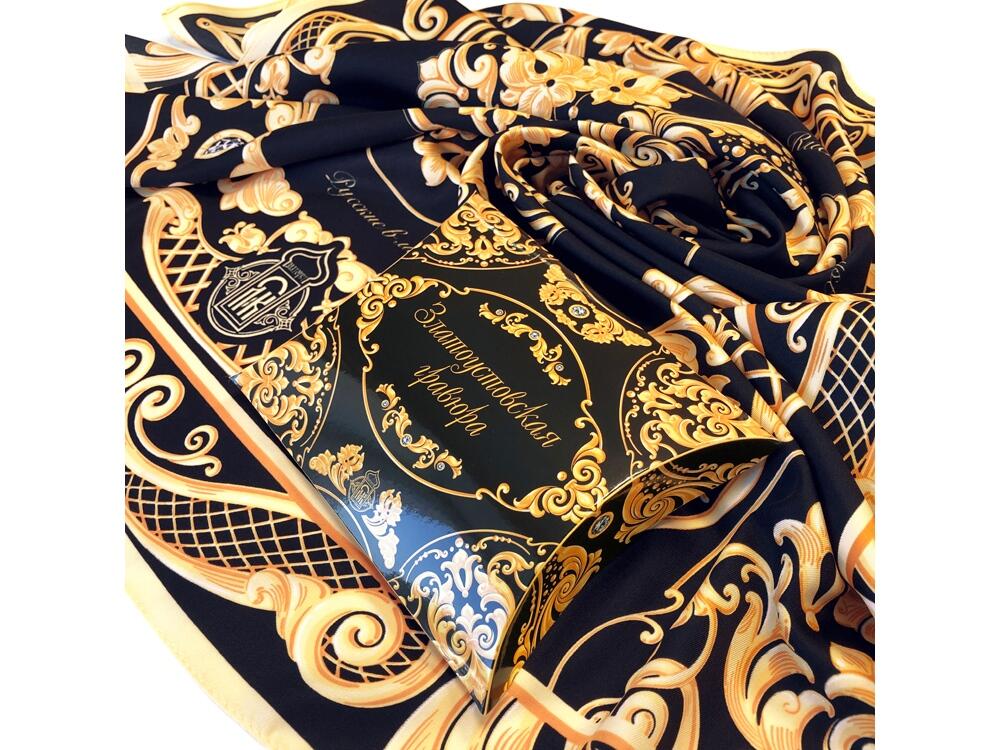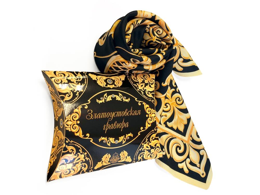 Платок «Златоуствоская гравюра» от бренда «Русские в моде» - это роскошь, изящество и характер, оригинальный аксессуар и настроение праздника, который всегда с Вами.