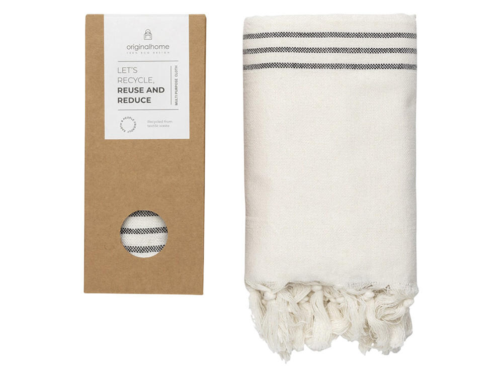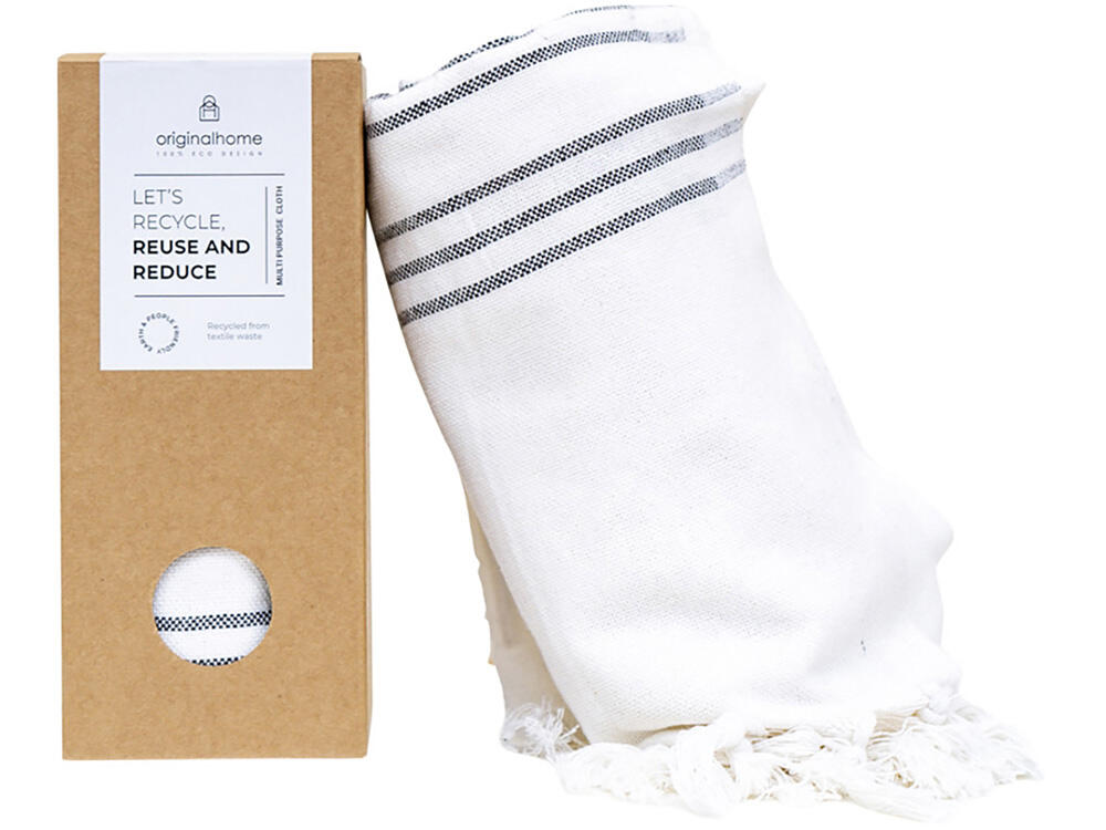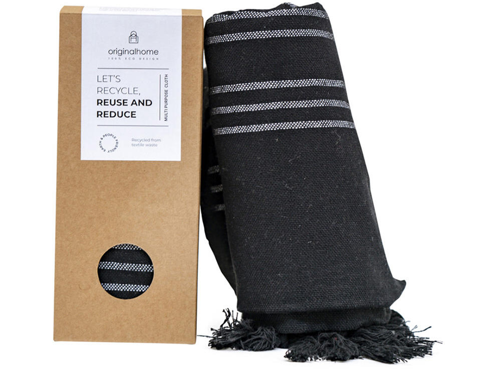 Этот универсальное изделие — достаточно плотное, чтобы использовать его как плед или полотенце, тонкое настолько, чтобы носить как шарф, и компактное, чтобы брать с собой куда угодно. Сделанное из 100% переработанных материалов текстильной отрасли в Бангладеше и сотканное на традиционной ручной ткацкой раме, оно способствует развитию женского предпринимательства. Идеальный социальный подарок, который вносит вклад как в устойчивое, так и в социально ответственное дело. Размер: 85 × 175 см. Состав: 70% переработанного хлопка, 25% переработанного полиэстера, 5% других переработанных волокон.