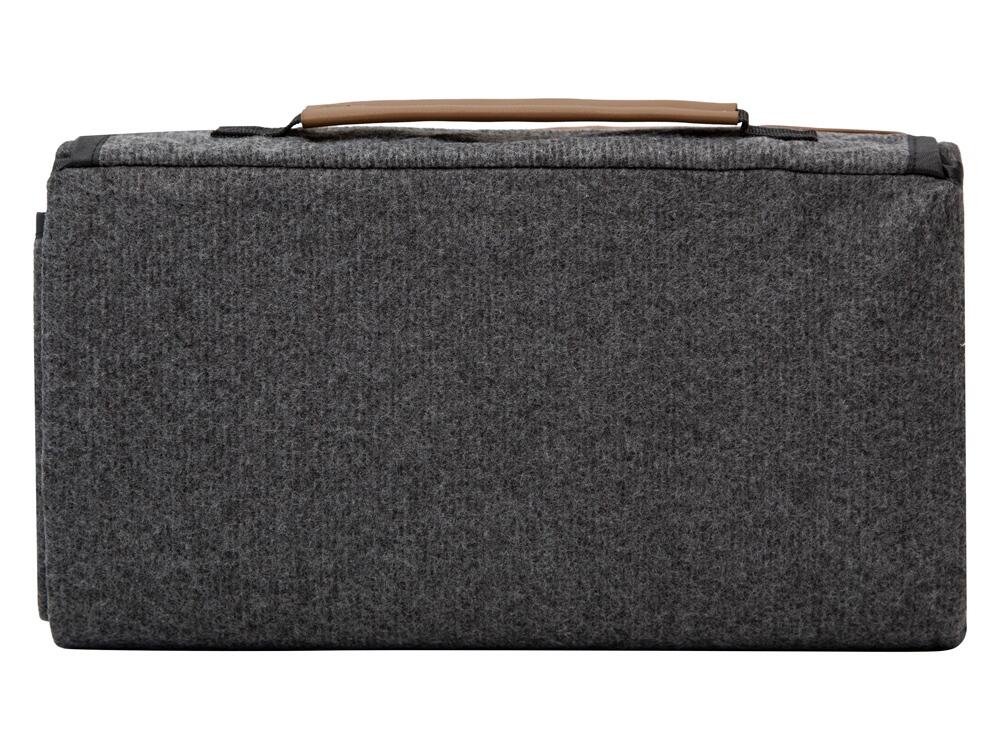 Мягкий и плотный плед не пропускает влагу благодаря непромокаемой подкладке. Для удобства использования предусмотрена ручка для переноски и карман на лицевой стороне для хранения мелочей или гаджетов размером 29 х 13 см.