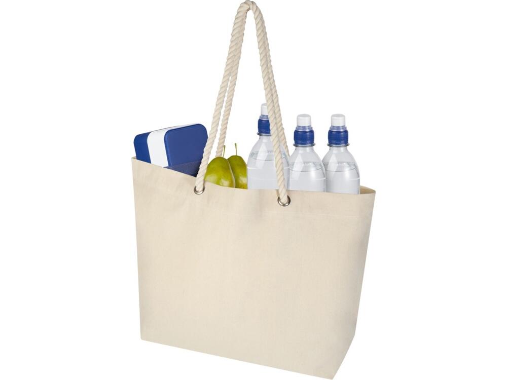 Эко-сумка Florida, изготовленная из 100% переработанного хлопка, сертифицированного согласно GRS, — это идеальная сумка для переноски всего необходимого для дня на пляже или повседневной прогулки. Хлопок плотностью 270 г/м² делает эту сумку прочной и долговечной, а веревочные ручки позволяют переносить тяжелые предметы в основном отделении. Длина ручек: 45 см. Выдерживает вес до 10 кг. Объем: 18 литр. GRS certified recycled cotton, 270 g/m2.