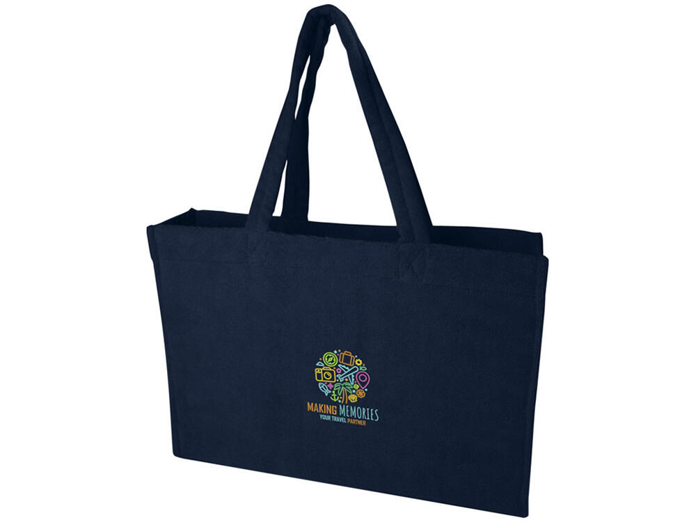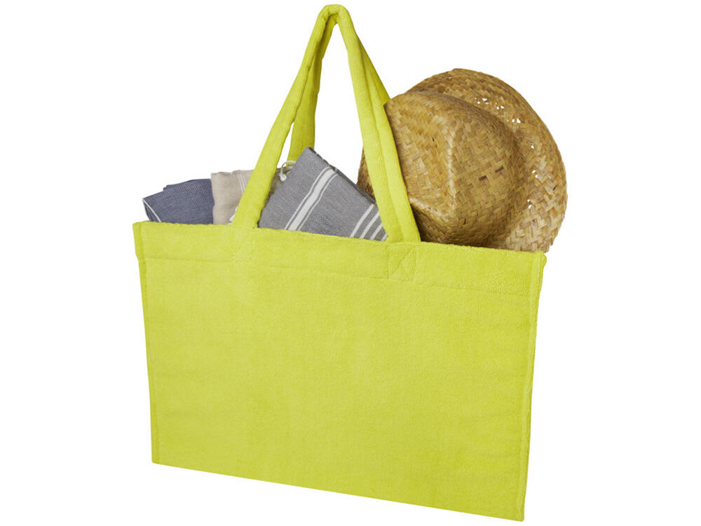 Мягкая, стильная и универсальная, эко-сумка Siam из переработанной махровой ткани станет идеальным спутником на лето. Изготовлена из мягкой махровой ткани, сертифицированной GRS (88% переработанного полиэстера, 12% полиамида), сумка обеспечивает уют и легкость, и идеально подходит для прогулок в теплую погоду. Эко-сумка имеет откидную ручку длиной 27 см для удобства переноски и вместительное отделение объемом 13 литров, что делает ее одновременно практичной и элегантной. Независимо от того, направляетесь ли вы на пляж, прогуливаетесь по городу или занимаетесь делами, махровая сумка Siam добавит непринужденный, но изысканный штрих к любому образу. 88% GRS certified recycled polyester, 12% Polyamide.