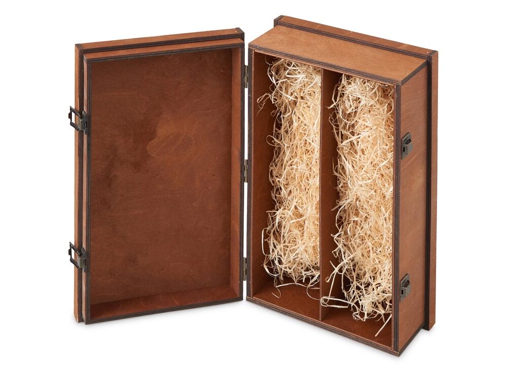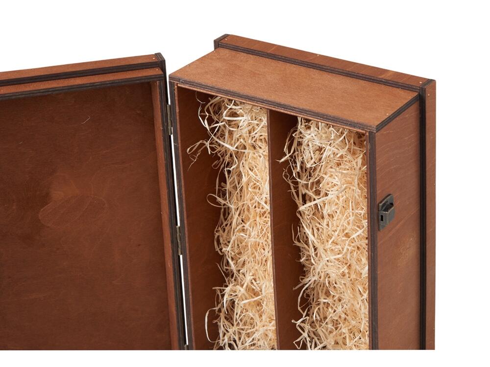 Универсальная деревянная коробка станет превосходным дополнением к вашему подарку. Разработанная для удобного и безопасного размещения двух стандартных бутылок, она обеспечивает не только надежную транспортировку, но и эффектную презентацию. После торжества коробка может служить для хранения или как элемент декора, продолжая радовать своего владельца.