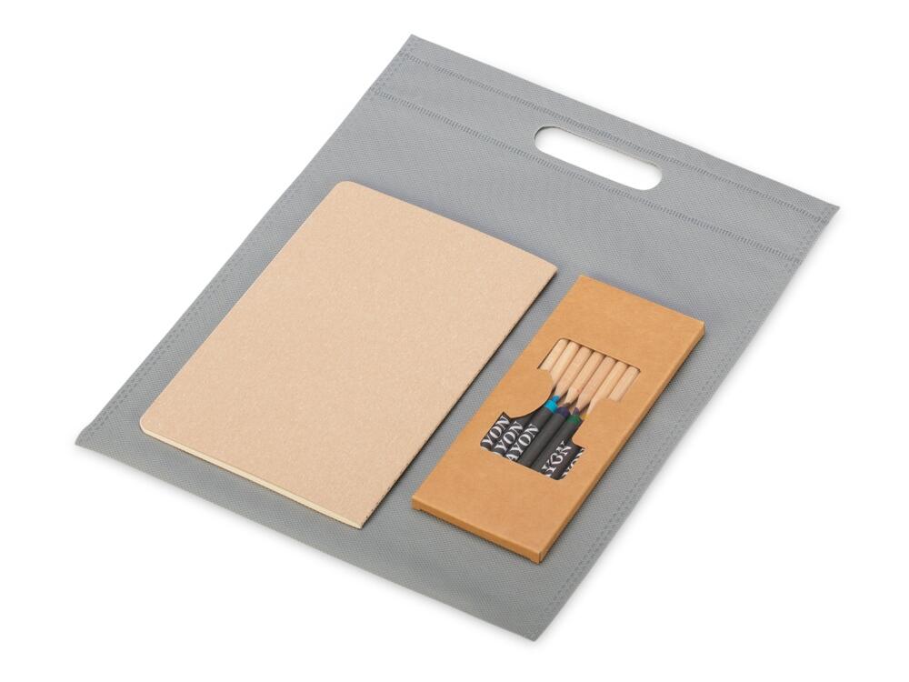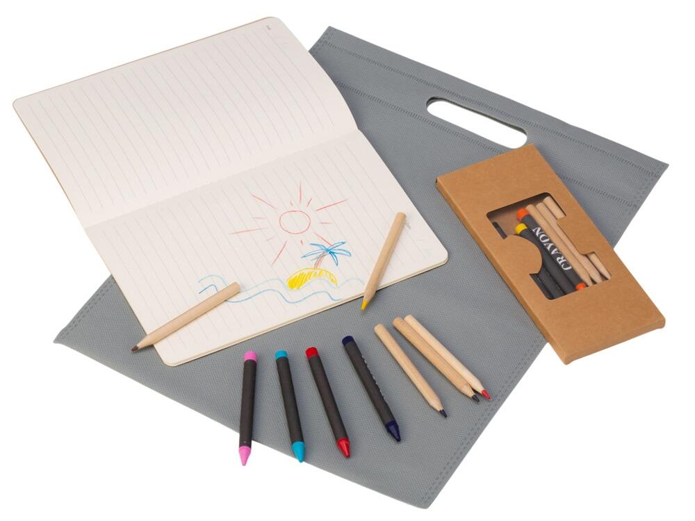 Набор из блокнота и цветных карандашей отлично подойдёт для детского промо-сувенира.