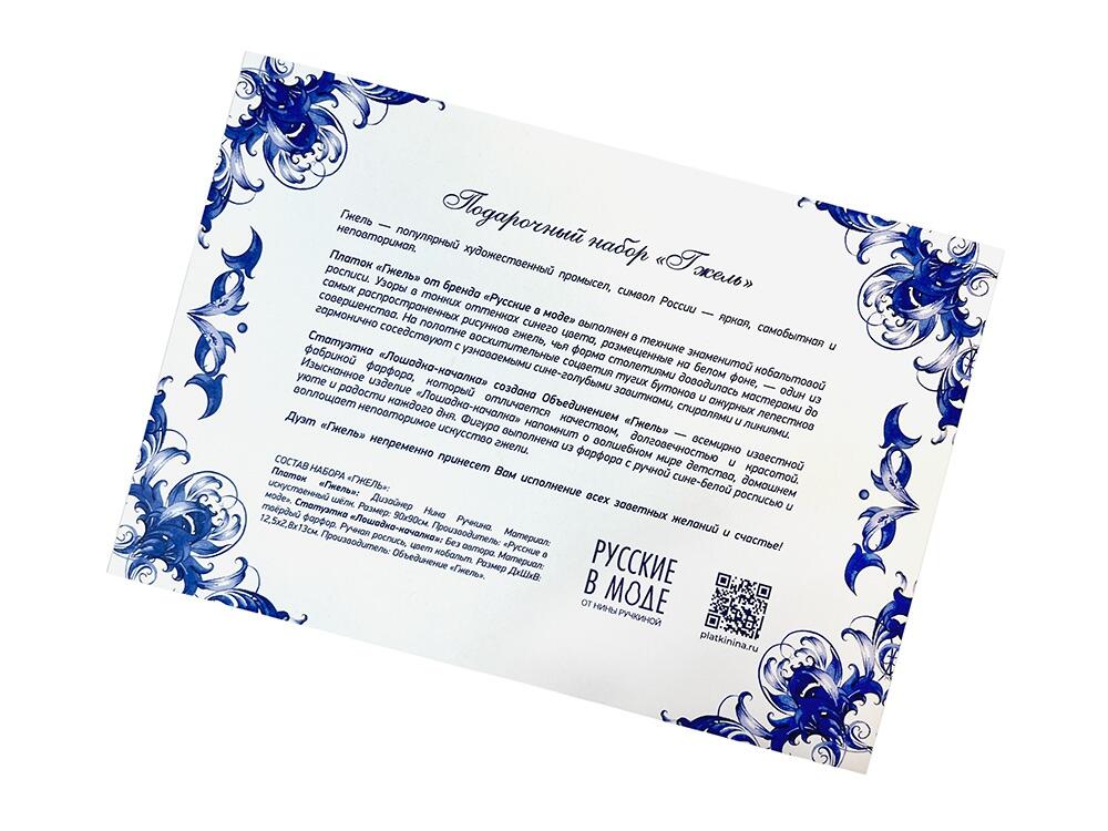 Статуэтка «Лошадка-качалка» создана Объединением «Гжель» — всемирно известной фабрикой фарфора, который отличается качеством, долговечностью и красотой. Изысканное изделия «Лошадка-качалка» напомнит о волшебном мире детства, домашнем уюте и радости каждого дня. Фигурка выполнена из фарфора с ручной сине-белой росписью и воплощает неповторимое искусство гжели.