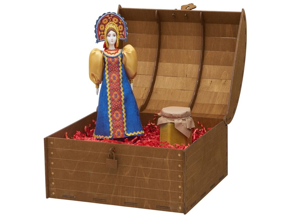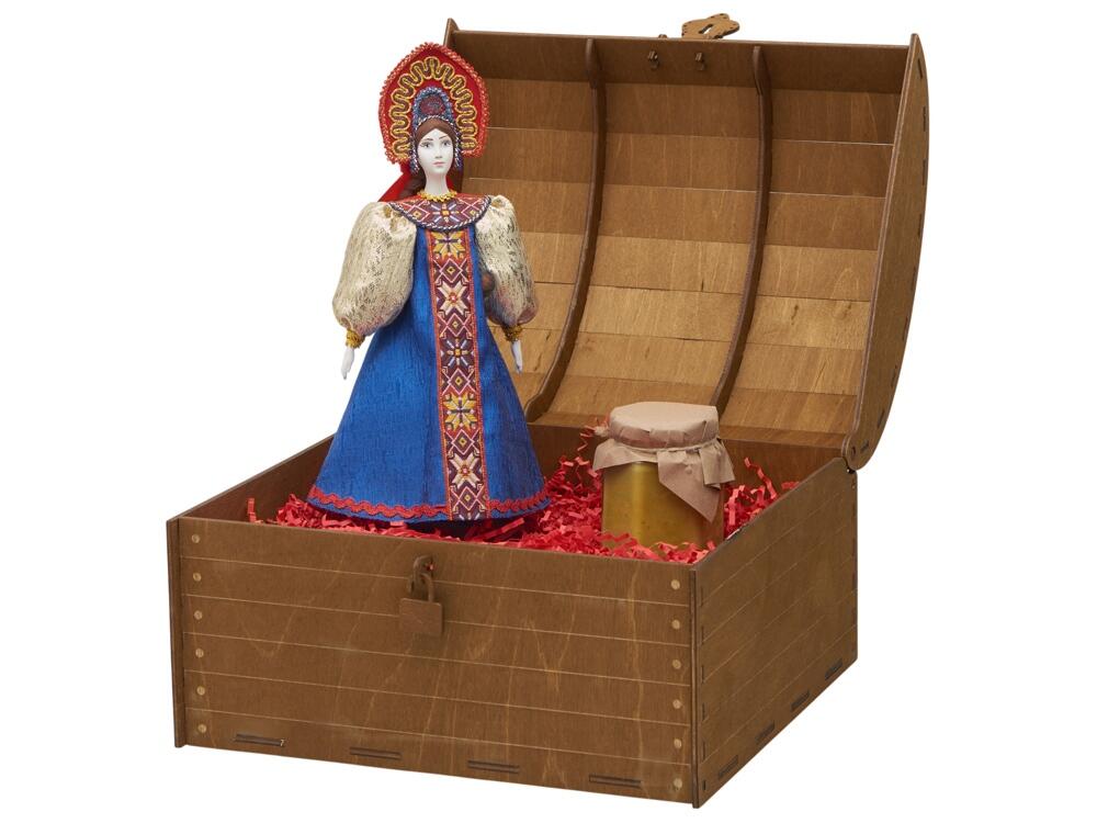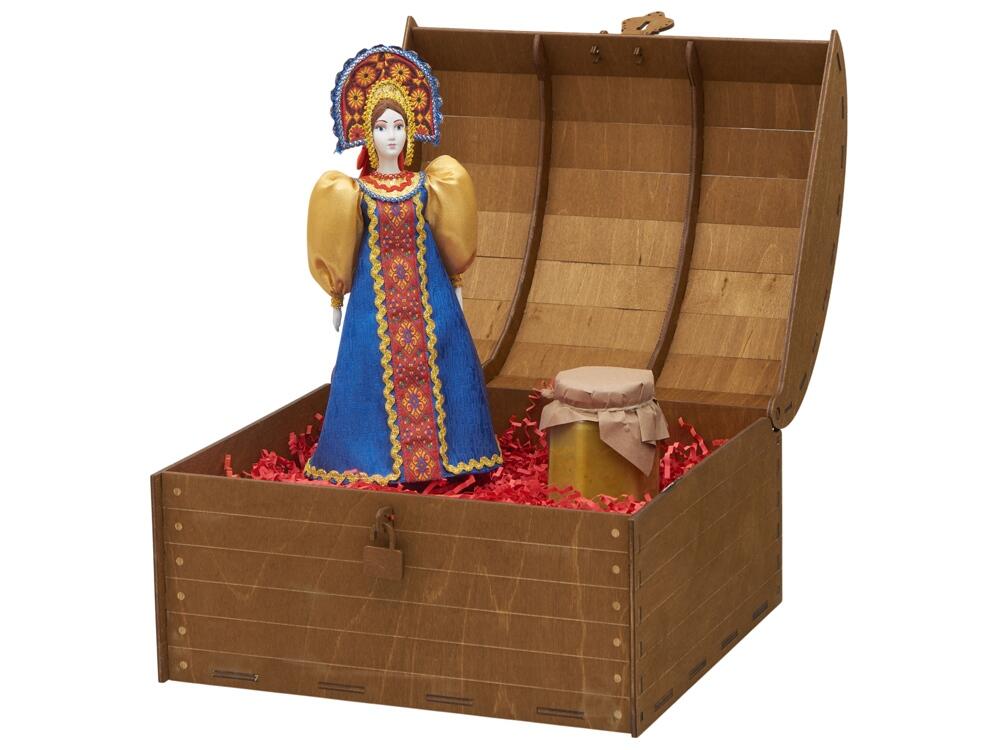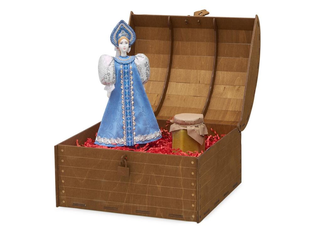 Материалкукла- фарфор/текстиль, сундук- дерево