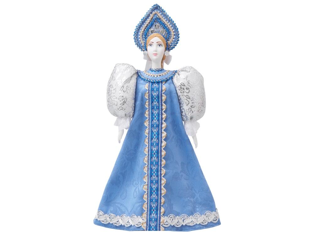 - Фарфоровая кукла в народном костюме ручной работы: расписной сарафан и кокошник с традиционной вышивкой воссоздают образ русской красавицы.