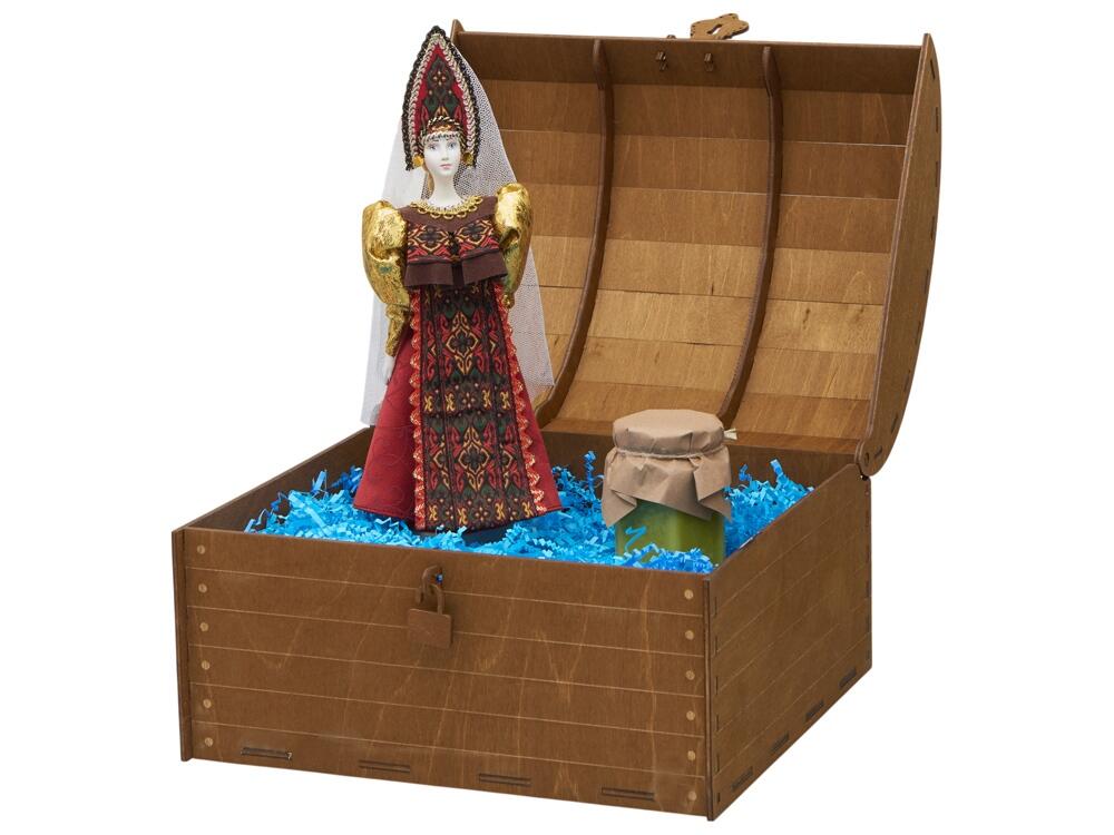 Роскошная упаковка: деревянный сундук с изящным замочком превращает вручение подарка в особый ритуал. Дополнительное брендирование шильдом спектрум делает презент эксклюзивным и памятным.
