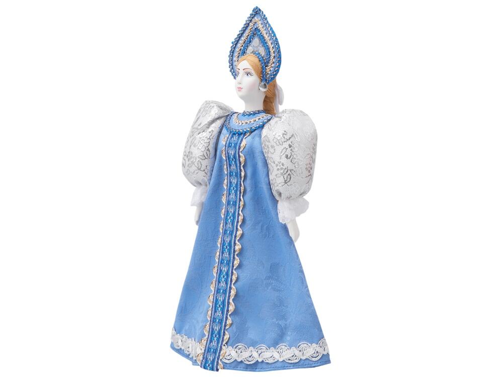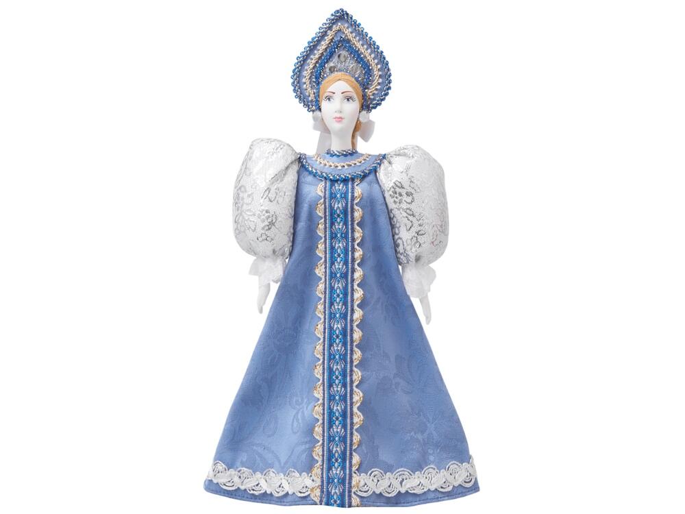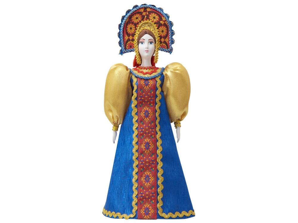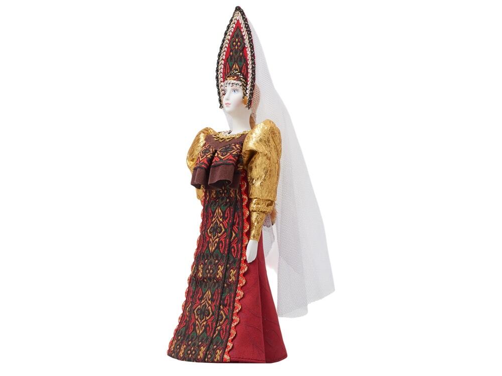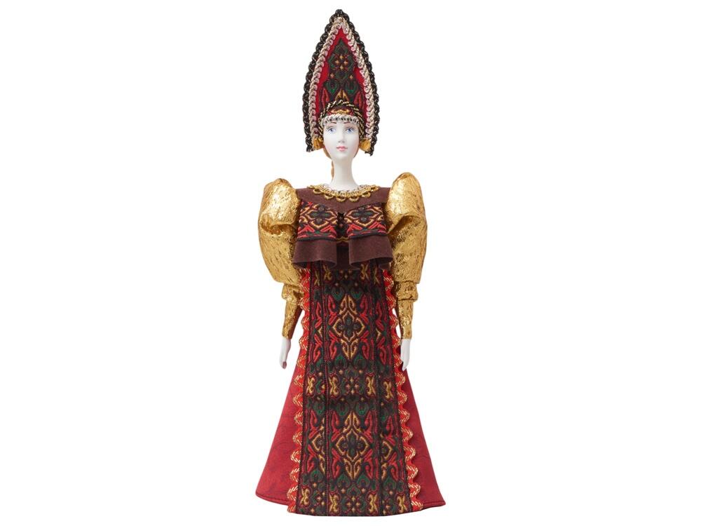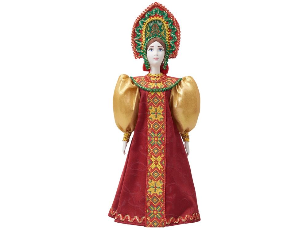 - Фарфоровая кукла в народном костюме ручной работы: алый сарафан с пышными рукавами и расшитый кокошник создают образ русской красавицы в праздничном наряде.
