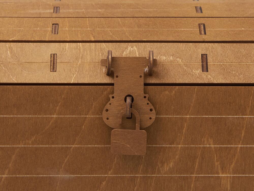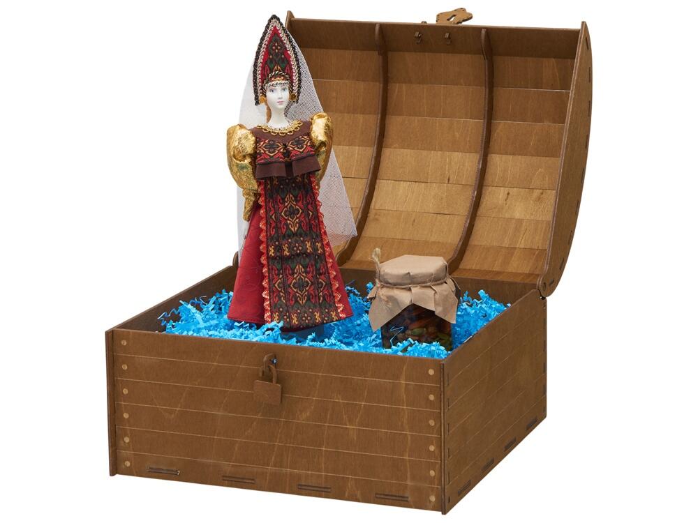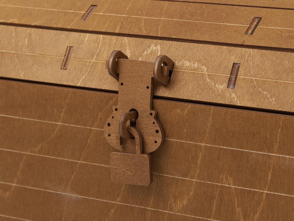 4. Деревянный сундук с изящным замочком превращает вручение подарка в особый ритуал. Дополнительное брендирование шильдом спектрум делает презент эксклюзивным и памятным.