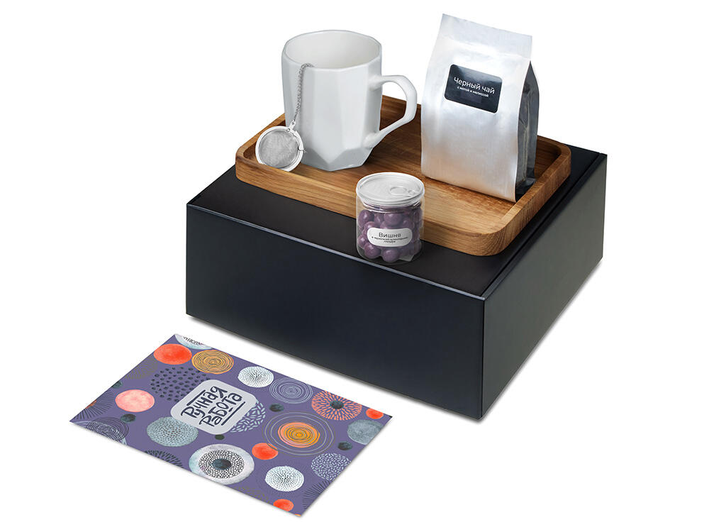 Набор «Re:y. Hearth» - о возвращении к простым, тёплым моментам, когда всё вокруг дышит покоем. Заварите ароматный чай, налейте напиток в кружку и устройтесь поудобнее. Деревянный поднос поможет красиво сервировать стол, приготовить чайный уголок, а при желании — организовать хранение любимых мелочей. Вишня в черничной глазури добавляет насыщенную сладкую ноту и превращает паузу в маленькое удовольствие. Этот набор словно переносит к домашнему очагу — туда, где тепло, спокойно и по-настоящему хорошо.