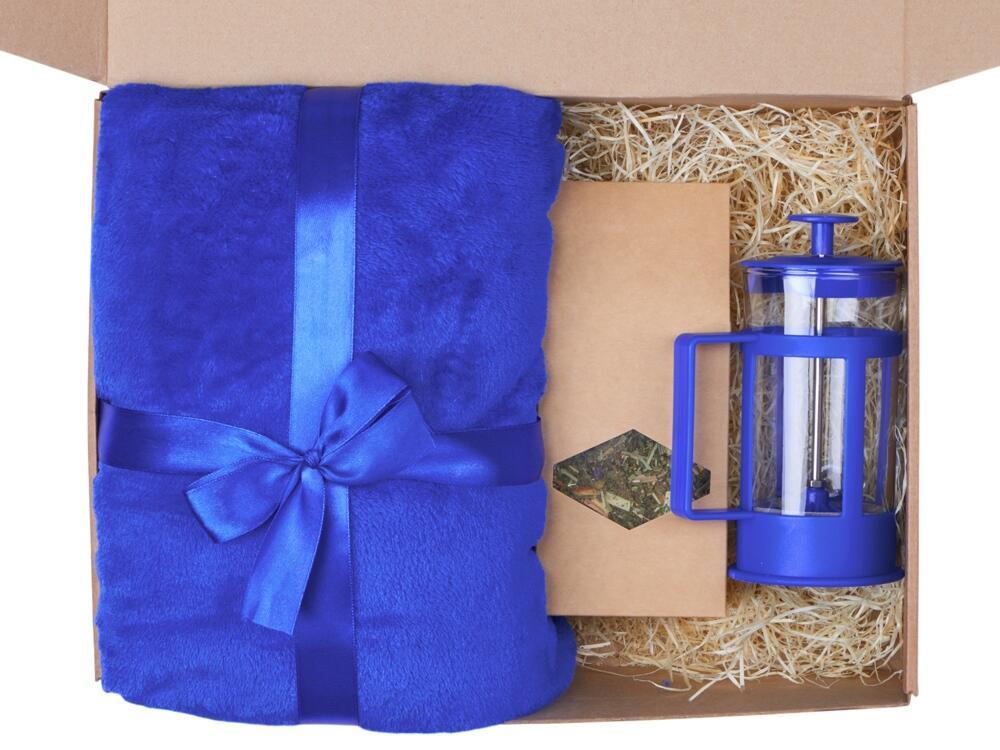 Набор продуман до мелочей. Когда зимним вечером подходит время чая, хочет завернуться в мягкий и теплый плед и наслаждаться любимым напитком, который можно заварить во френч прессе, входящем в комплект. Набор упакован в стильную крафтовую коробку.