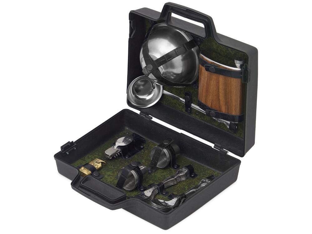- 6 стопок из нержавеющей стали — для дружеских тостов и веселых встреч на природе.