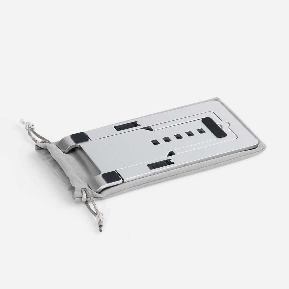 Подставка складывается и не занимает много места, ее удобно взять с собой на встречу или в дорогу. Поставляется в мешочке из вельвета и коробке из картона.