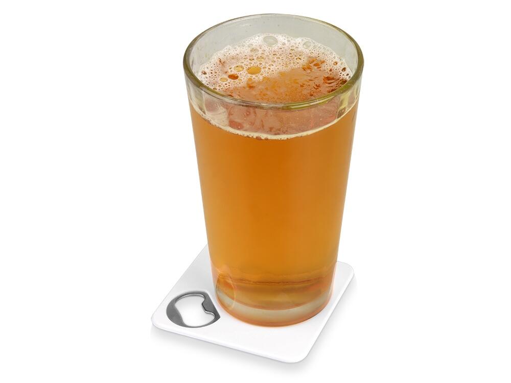 Пластиковая подставка идеально подходит для бокалов различной формы. Также подставка снабжена удобной открывалкой для бутылок. Поверхность сувенира легко персонализировать с помощью УФ-печати или тампопечати. Нижняя сторона подставки покрыта материалом, который не позволит бокалу соскользнуть со стола. Подставка с открывалкой для бокалов «Liso» - идеальный подарок для всех любителей пенного!
