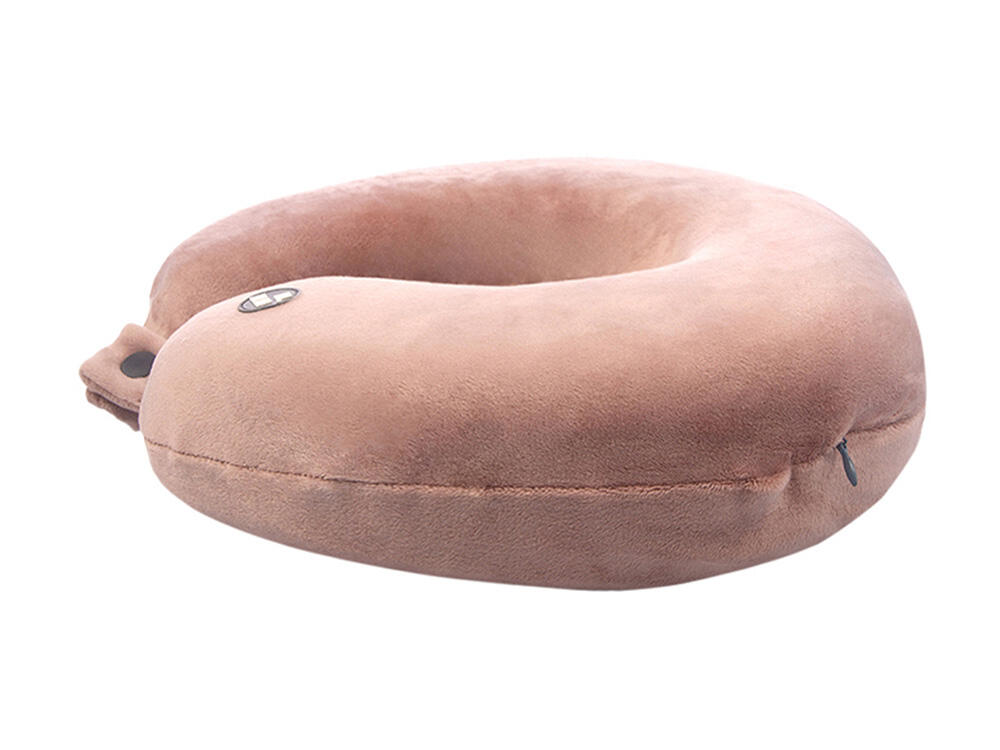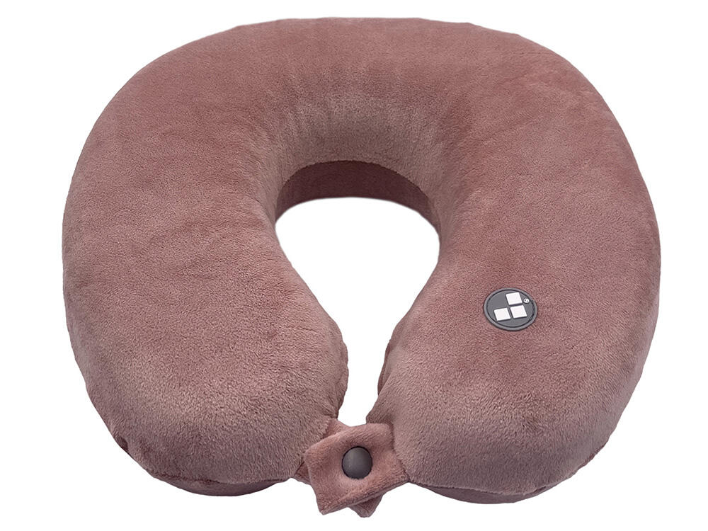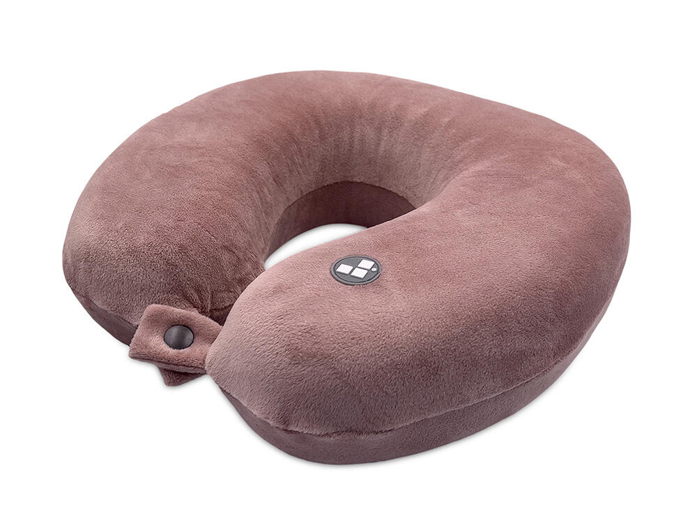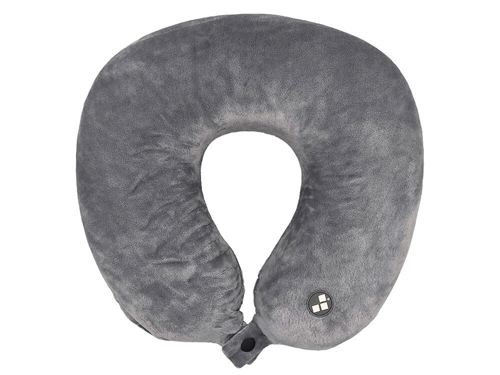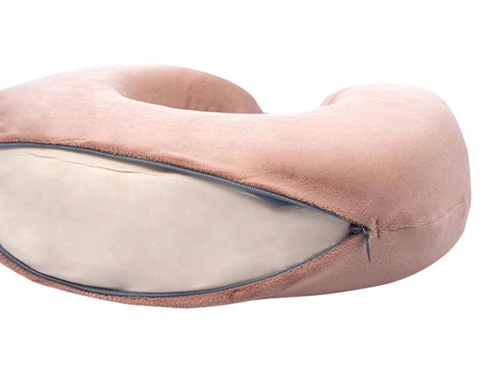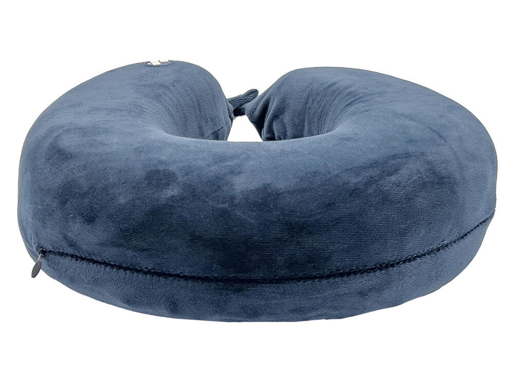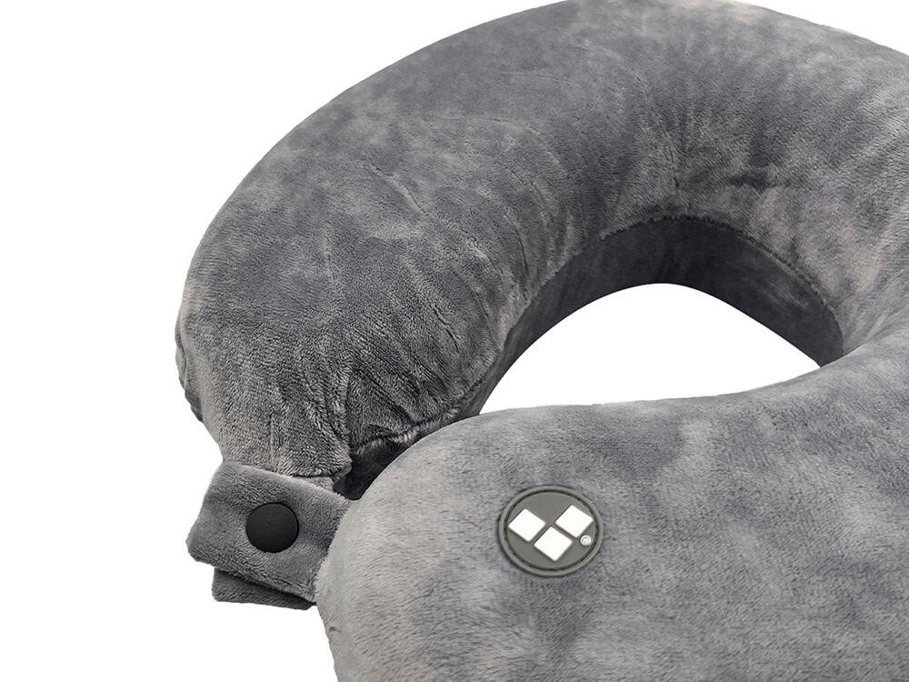 Удобная кнопочная застёжка надёжно фиксирует подушку на шее, а в комплект входит прочный круглый чехол на молнии — для компактного хранения и перевозки.