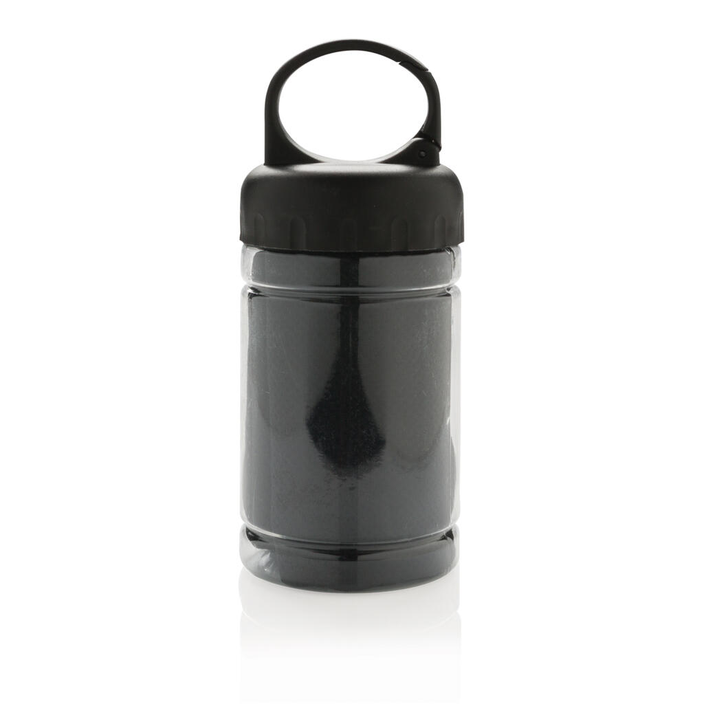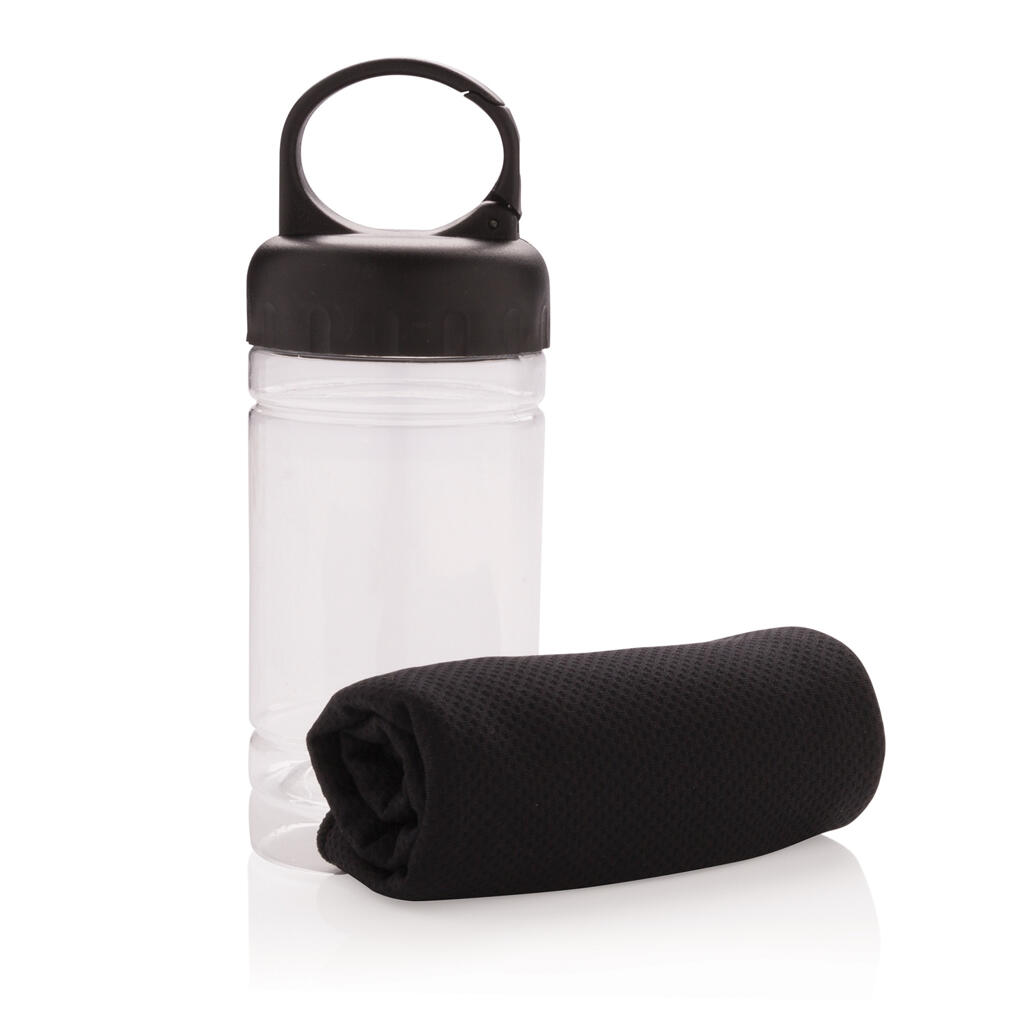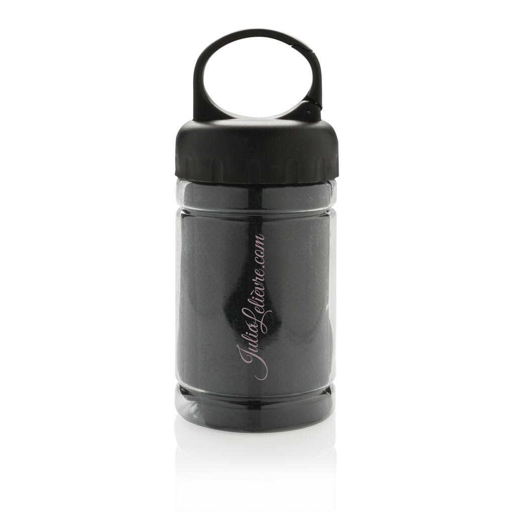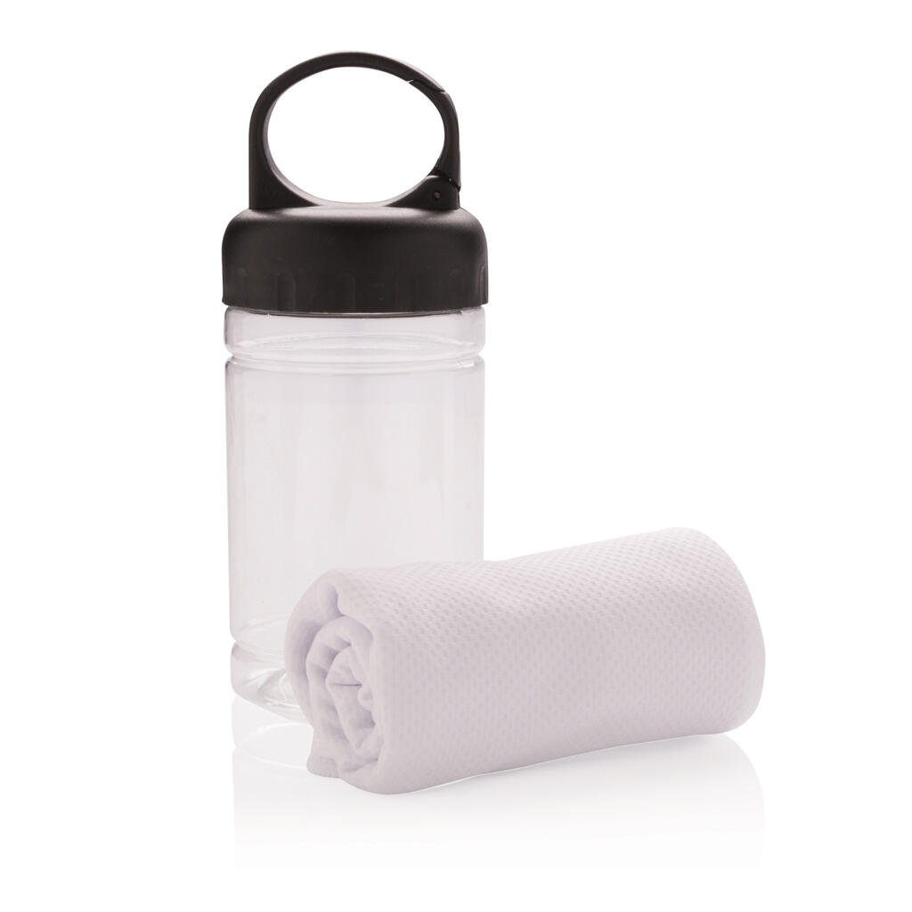 Полотенце Cooling из микрофибры с функцией защиты от ультрафиолетовых лучей (степень защиты 50+). Просто добавьте немного холодной воды в колбу, и охлажденное полотенце поможет вам оставаться на высоте даже в самый жаркий день. Колба изготовлена из PP с крышкой из ABS-пластика. Поставляется с карабином для крепления к рюкзаку.