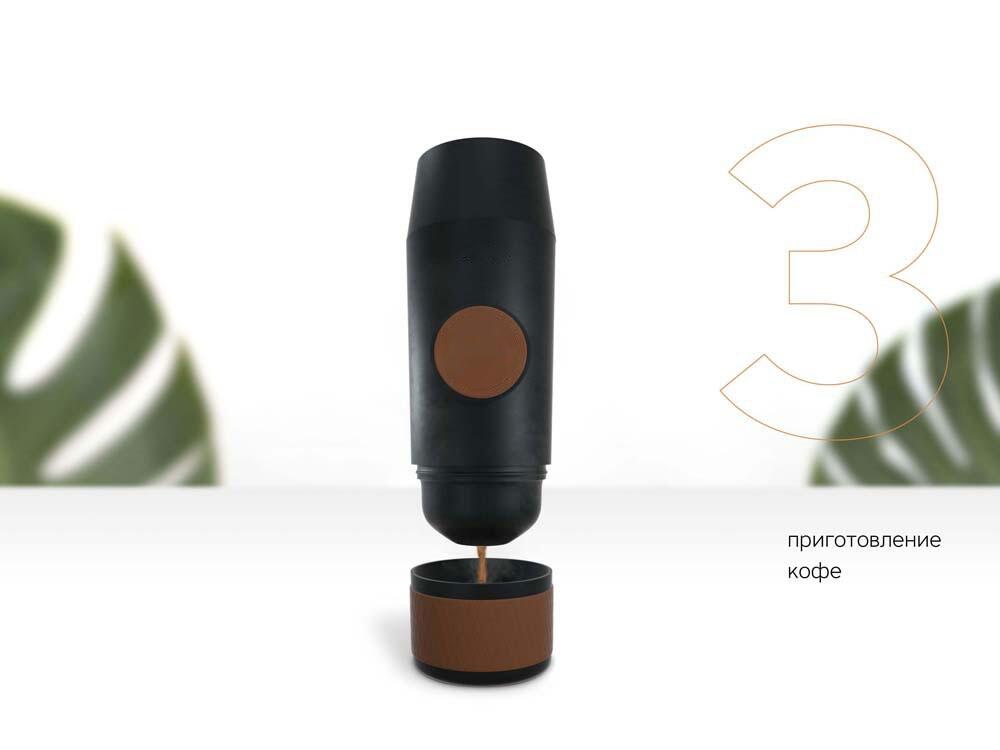 Barista – это компактная кофемашина, она с лёгкостью помещается в сумку, работает без розетки от встроенного аккумулятора. Все что вам потребуется для приготовления ароматного и свежего эспрессо – это кипяток и кофе (молотый или в капсулах).С помощью этой кофемашины вы сможете приготовить кофе в любом месте – дома, на работе, в походе или на прогулке. Для приготовления кофе вам не потребуется искать кружку, емкость для свежеприготовленного кофе находится прямо под крышкой кофемашины. Термокольцо на крышке позволит удобно и безопасно наслаждаться свежим напитком. Портативная кофемашина создает давление до 15 бар для приготовления настоящего эспрессо. Одного запуска хватает на 2 чашки эспрессо по 30 мл, минимальное количество воды для запуска 50 мл. Для приготовления горячего напитка необходим кипяток 85°С – вы можете использовать кипяченую воду из термоса или чайника. Рекомендуется мыть под обычной теплой водой без добавления моющих средств.