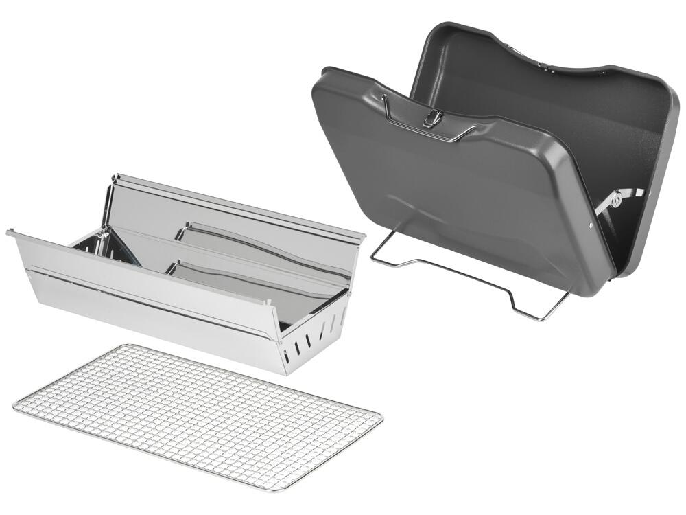 Портативный гриль встроен в компактный нержавеющий кейс, что позволяет переносить и использовать его на природе. Он не занимает много места, прост в использовании, легко раскладывается. В комплекте к грилю идет одна решетка гриль. С ним отдых на природе может быть не только приятным, но и спонтанным — просто положите кейс в багажник, чтобы всегда быть готовым к приключениям!