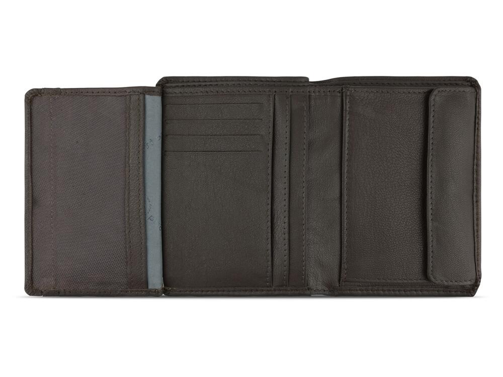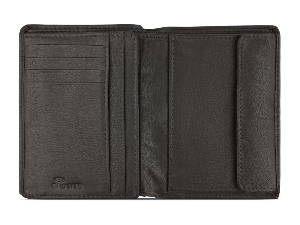 Функциональная организация: 2 отделения для банкнот, 8 слотов для карт, 6 карманов, отделение для монет, сетчатый карман, защита данных RFID.