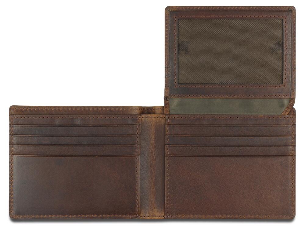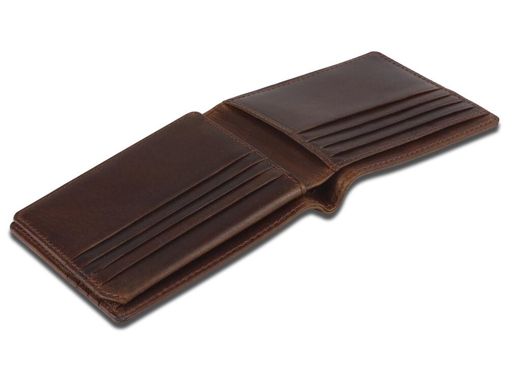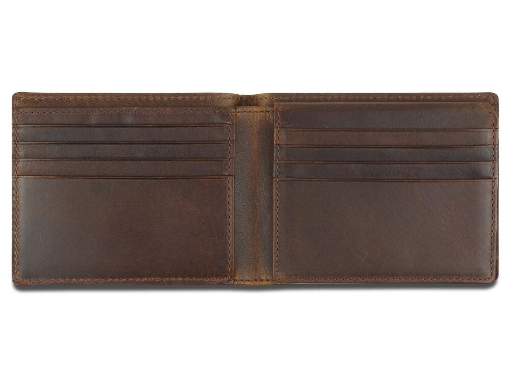 Портмоне изготовлено вручную из натуральной кожи буйвола, обеспечивает безопасное хранение купюр и кредитных карт.