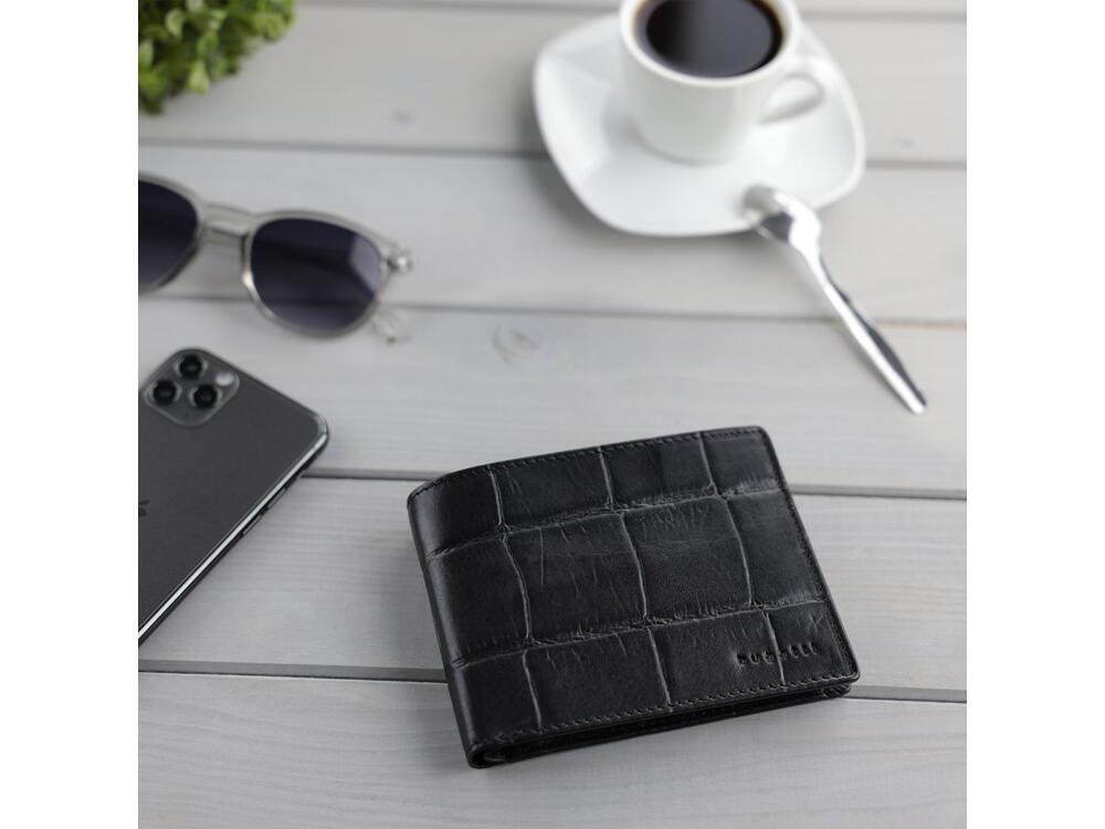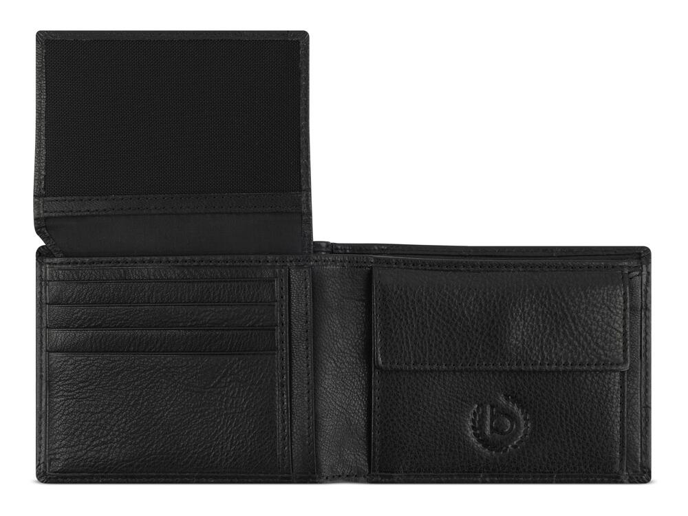 Функциональная организация: 2 основных отделения для купюр, 7 слотов для карт, 5 карманов, сетчатый карман, отделение для монет, защита данных RFID.