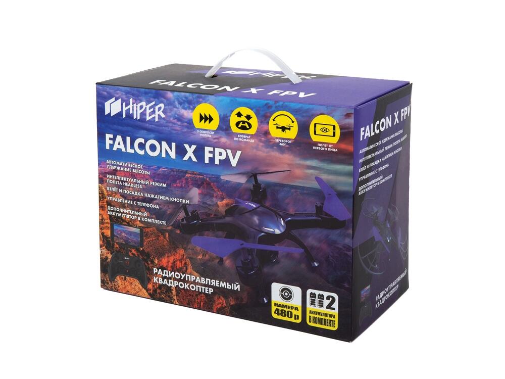 Квадрокоптер HIPER FALCON X FPV – имеет корпус фиолетово-черного цвета, подвесную FPV видеокамеру 480P, квадрокоптер идеально подходит начинающим пилотам для совершенствования навыков управления. Для стабилизации в воздухе квадрокоптер оснащён гироскопом, а встроенный барометрический датчик помогает удерживать текущую высоту. Испытайте свободу полёта от первого лица, установив приложение для IOS и Android. Прямо с планшета или смартфона вы сможете управлять полётом и контролировать фото-видео съёмку. Либо просто закрепите свой смартфон в качестве экрана на пульте ДУ и наблюдайте трансляцию камеры по WiFi. FALCON X FPV оснащён двумя аккумуляторами Li-po 3.7В / 380 мАч, одного АКБ хватает на 6 минут полета! Одной кнопкой на пульте управления вы сможете поднять дрон в воздух и посадить его на землю. Легко освоив пилотирование, вы оцените три скорости полёта, возврат одной кнопкой, кульбиты на 360 градусов и световые эффекты. Значительно облегчит управление режим Headless, при котором не важно, куда нацелена передняя часть квадрокоптера, он полетит по вашей команде в заданном направлении. Особенности: • В комплекте 2 аккумулятора! • Барометрический датчик контроля высоты полета • 6-и осевая система стабилизации • Подвесная FPV видеокамера 480Р / 0,3 Мп с трансляцией изображения по WiFi • Управление с телефона / WiFi • Снимает фото и видео по команде с пульта • Интуитивный режим управления «Headless» • Три переключаемых режима скорости • Взлет и посадка нажатием одной кнопки • Возврат одной кнопкой • Кульбиты на 360 градусов • Стабильный сигнал 2.4 Ггц Технические характеристики: Радиус действия: до 60 метров Длина квадрокоптера – 38,5 см Ширина квадрокоптера – 38,5 см Аккумулятор : LiPo 3.7В / 380 мАч Вес квадрокоптера : 91г (без камеры) Время полета: ~ 6 мин Время зарядки: ~ 60 мин Рекомендуется докупить: 3 батарейки АА Беспилотный летательный аппарат (квадрокоптер, самолет на РУ) весом от 150 гр до 30 кг, после его приобретения, в течение 10 дней необходимо зарегистрировать в порядке, установленном законом (Например, бесплатная заявка через «Госуслуги»). Согласно постановлению Правительства от 25.05.2019 № 658 (в ред. Постановления Правительства РФ от 19.03.2022 N 415), учету подлежат беспилотные гражданские воздушные суда массой от 150 грамм до 30 килограмм. Согласно этим изменениям, теперь дроны со взлётной массой до 30 кг разрешено запускать на высоте до 150 метров от земли или воды в пределах прямой видимости от оператора и в светлое время суток без согласования. Пожалуйста, всегда проверяйте актуальные законы вашего региона перед использованием квадрокоптера.