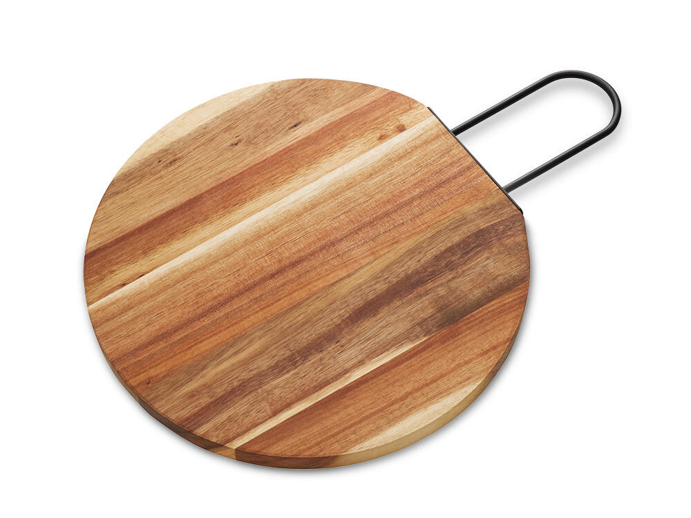 Круглая доска "Кира" из массива акации — не просто кухонная утварь, а настоящее украшение для вашего рабочего пространства. Благодаря твердости древесины и пропитке специальным маслом, поверхность устойчива к появлению глубоких царапин и впитыванию запахов, способна сохранить безупречный вид долгие годы. Удобная металлическая ручка позволяет легко перемещать доску по кухне, а после использования — отправить её на крючок для компактного хранения. Диаметр 23 см идеально подходит для нарезки овощей, зелени, сыра или эффектной сервировки закусок перед подачей на стол. Подарите себе гармонию функциональности и природной эстетики с доской «Кира».