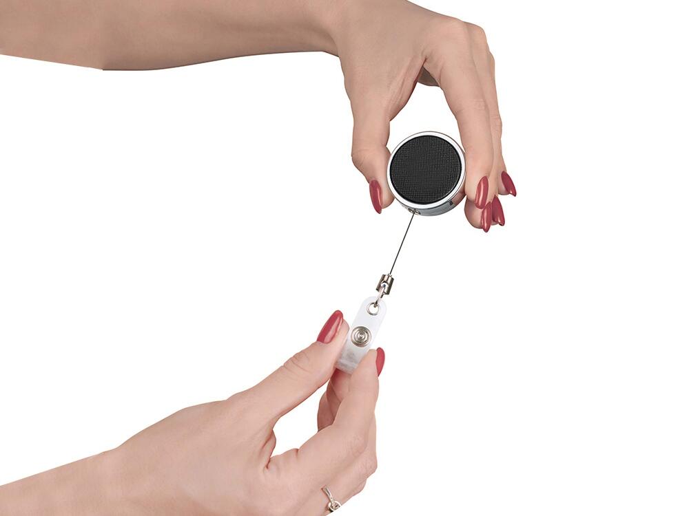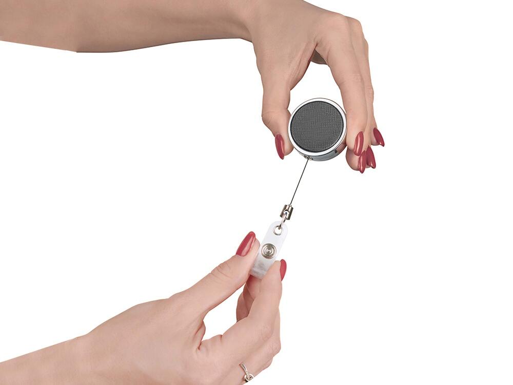 Основное преимущество заключается в том, что он не запутается и отлично подойдёт людям, которые не любят ничего носить на шее. Его можно удобно закрепить на одежде, за ремень или карман брюк, например. При этом, когда пропуск нужно приложить к электронному считывающему устройству, достаточно просто слегка потянуть и будет получена необходимая длина.