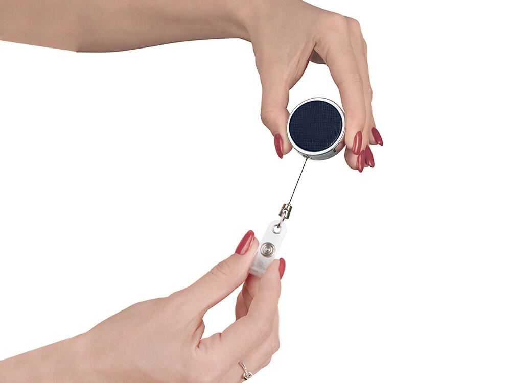 Ретрактор может быть не просто средством для закрепления бейджа или пропуска, но и стильным деловым аксессуаром, компонентом welcome pack или набора для конференций, который будет продолжать фирменный стиль вашей компании при помощи брендирования. Благодаря металлическому корпусу и вставке из экокожи он смотрится очень элегантно и строго.