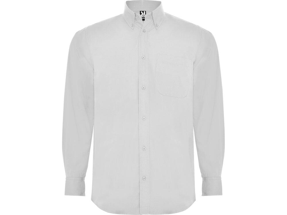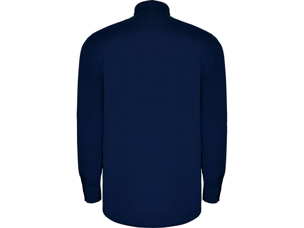 Рубашка мужская с длинным рукавом на семи пуговицах. Накладной карман на груди слева, закругленный низ изделия. Уголки воротника продублированы пуговицами.