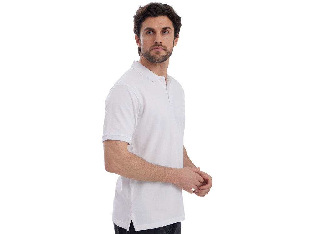 Модель выполнена из премиального трикотажа пике плотностью 240 г/м² — оптимальный баланс между прочностью, долговечностью и комфортом в носке. Благодаря гребенной пряже ткань отличается гладкостью, устойчивостью к истиранию и презентабельным внешним видом даже после многочисленных стирок.