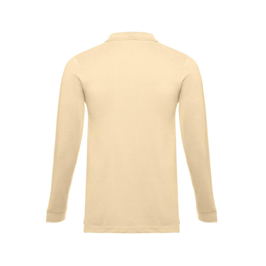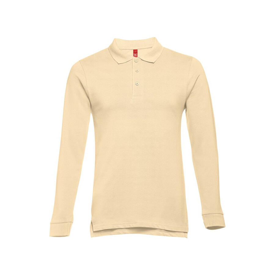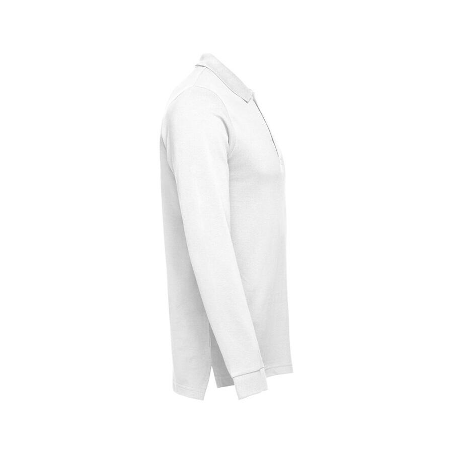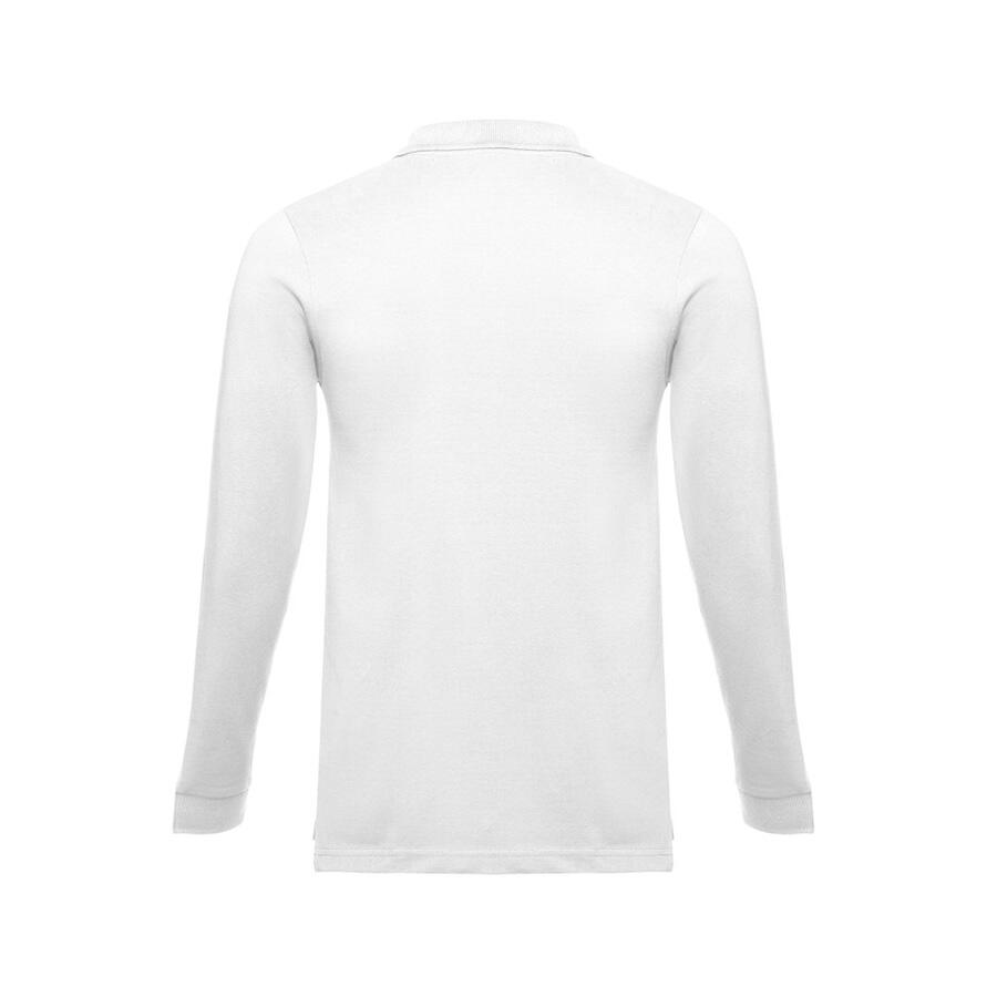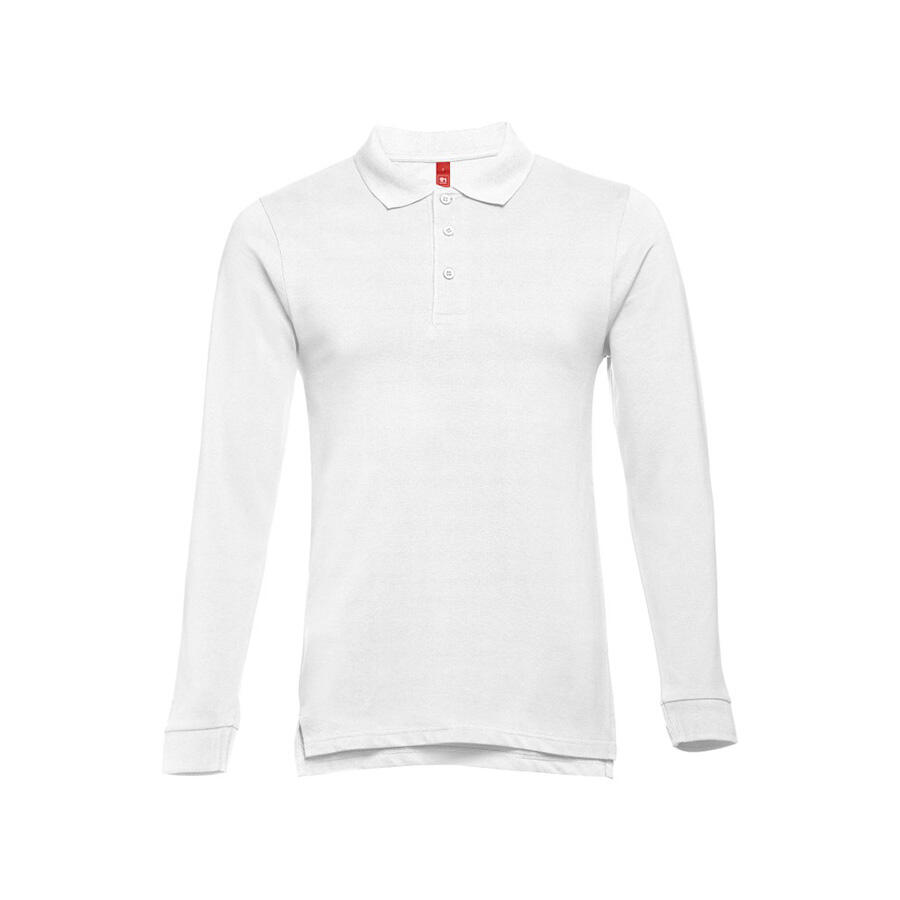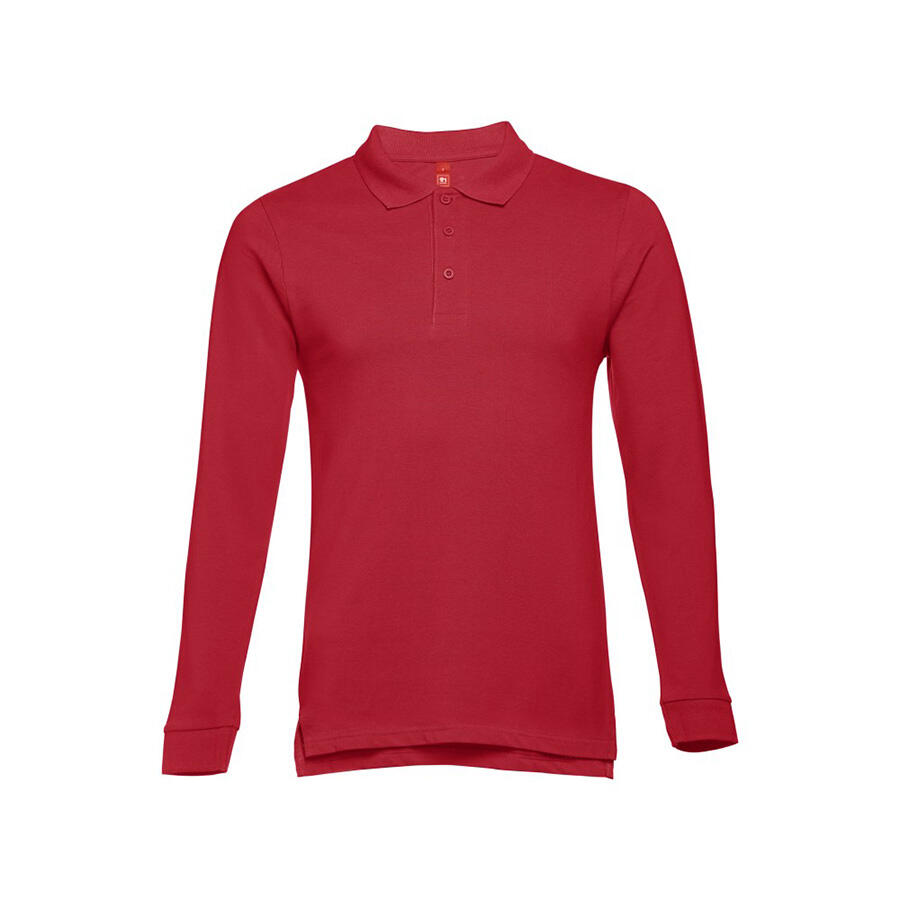 Мужская рубашка-поло с длинным рукавом из хлопковой ткани-пике. Полотно футболки упругое и гладкое благодаря обработке ферментами "enzyme wash" и сохраняет форму при стирке. Модель полуприлегающего силуэта. Благодаря манжете из риба 1х1 рукав смотрится очень аккуратно. Воротник также выполнен из риба 1х1, внутри ворота - укрепляющая тесьма по горловине. Планка с 3 пуговицами в цвет основной ткани изделия. Запасная пуговица на ярлыке во внутреннем боковом шве.