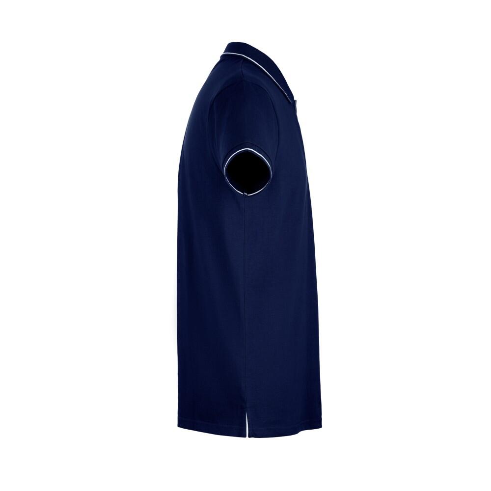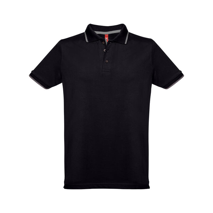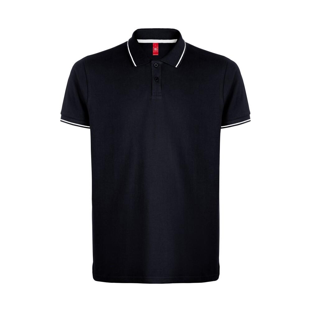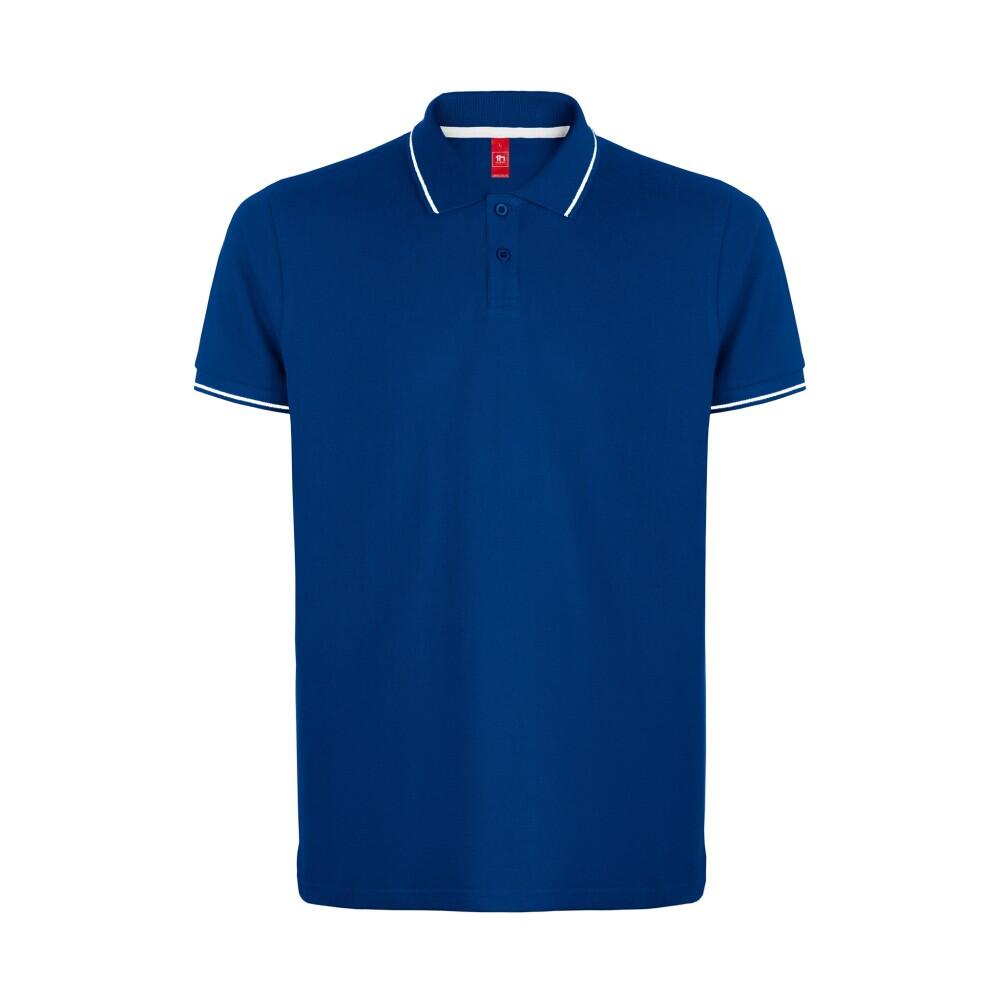Мужская рубашка-поло из хлопковой ткани-пике. Полотно футболки упругое и гладкое благодаря обработке ферментами "enzyme wash" и сохраняет форму при стирке. Модель полуприлегающего силуэта. Благодаря манжете из риба 1х1 рукав смотрится очень аккуратно. Воротник также выполнен из риба 1х1, внутри ворота - укрепляющая тесьма по горловине. Манжета на рукавах и край воротника выполнены контрастным цветом. Планка с 3 контрастными пуговицами. Запасная пуговица на ярлыке во внутреннем боковом шве.
