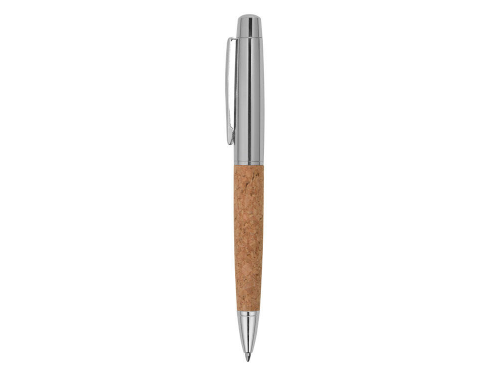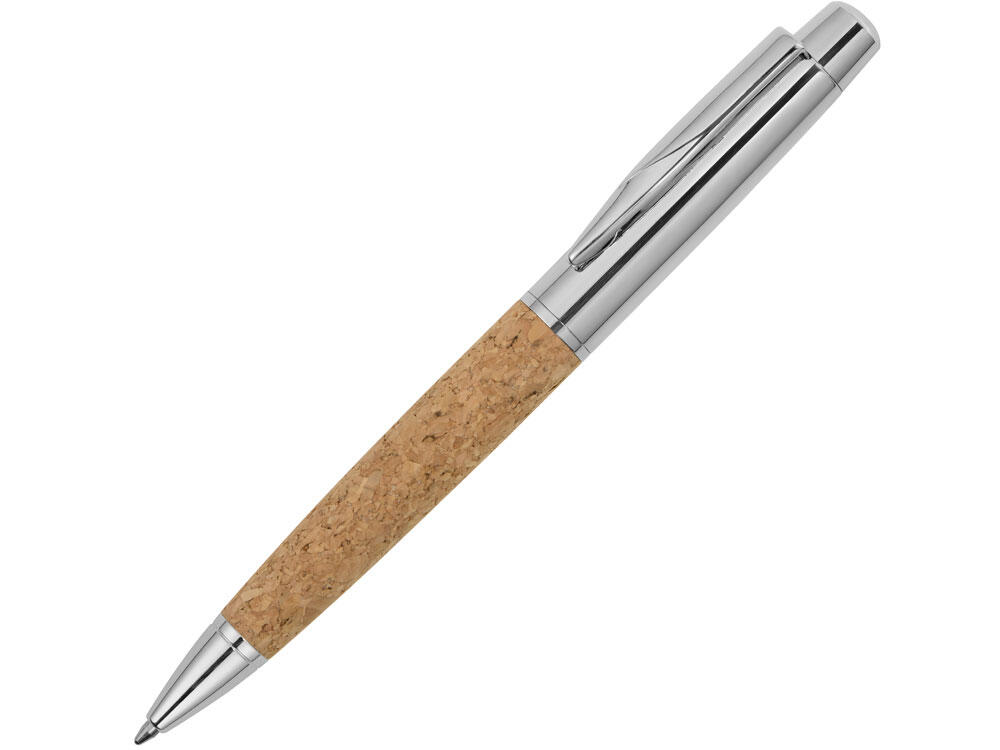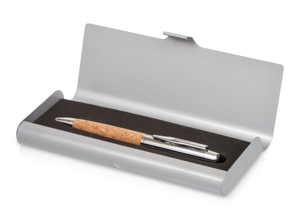Металлическая шариковая ручка Cask с вставкой из пробки на корпусе в металлическом футляре.