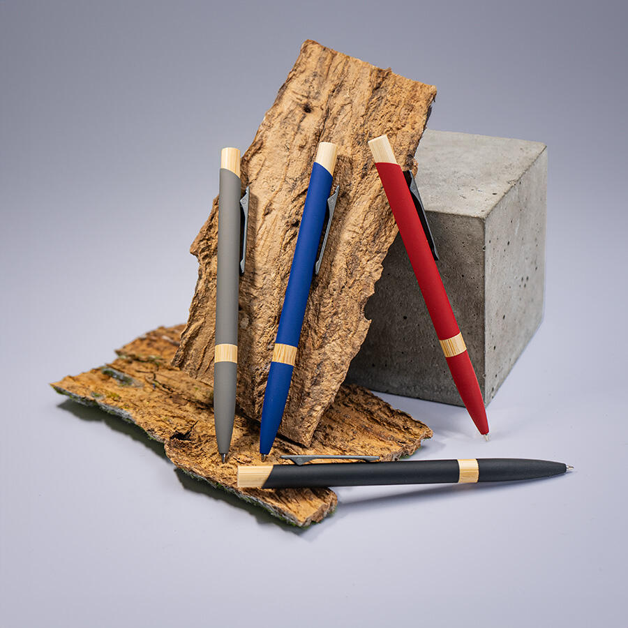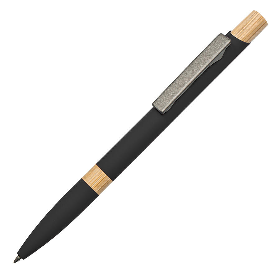 Экстравагантная модель ручки FRESCO. Корпус алюминиевый с матовым покрытием soft touch - ручку приятно держать в руке. Металлический клип-прищепка является эксклюзивом бренда В1. Отделка из натурального бамбука добавляет модели оригинальность. Кнопка нажимного механизма оптимального диаметра удобна для подушечки пальца. Визуально ручка выглядит очень благородно. В использовании гарантированно комфортна.