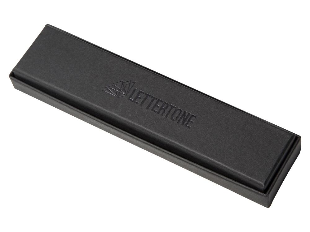 Поставляется ручка в чёрной матовой коробочке с прозрачным логотипом «Lettertone» на дне.