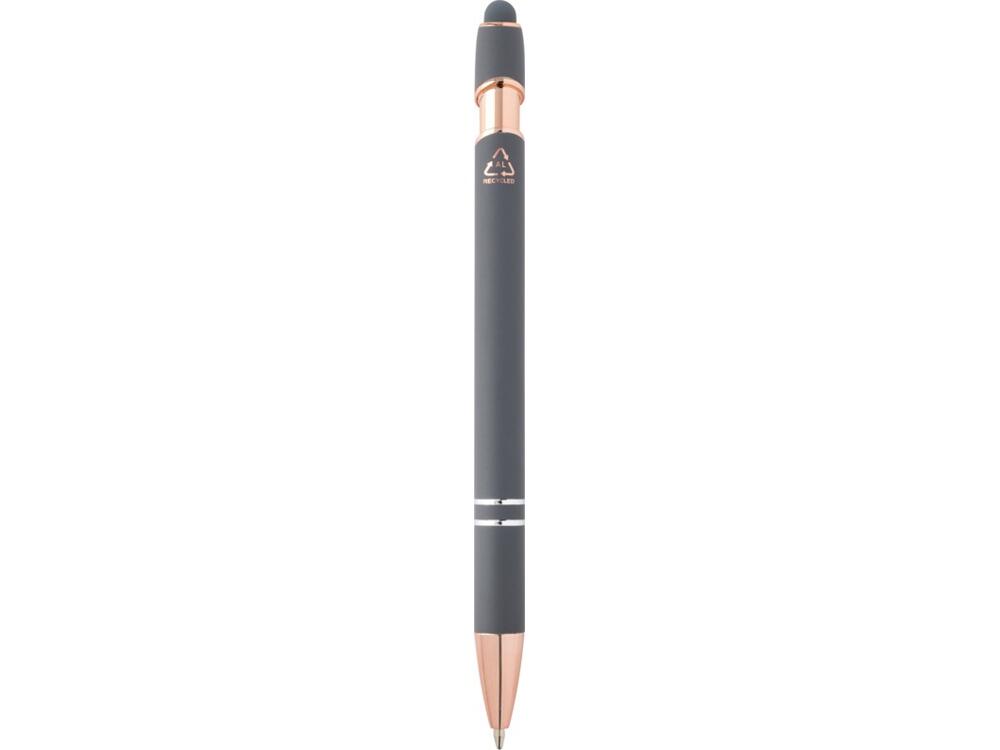 Шариковая ручка Nanna с покрытием из розового золота имеет корпус из переработанного алюминия и сенсорный стилус из силикона. Переработанный алюминий уменьшает количество отходов на свалках и помогает сохранять природные ресурсы для сокращения выбросов парниковых газов. Цвет чернил: синий. Длина непрерывной линии: 800 метров. Размер пера: 1,0 мм. Recycled Aluminium.