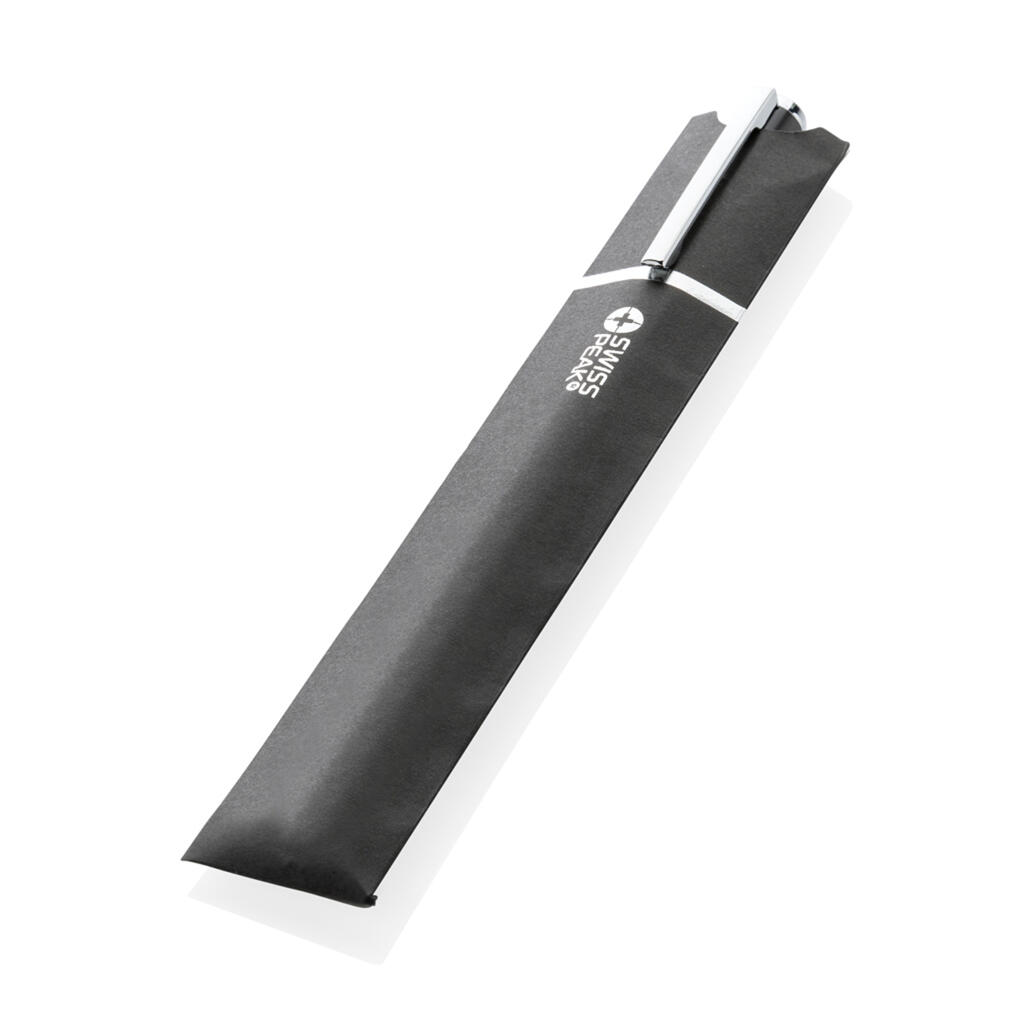 А что насчет внешнего вида ручки? Она строгая, минималистичная, но при этом очень эффектная — идеально подходит для деловых людей. Стержня с синими чернилами хватит на 1 200 метров письма. Все переработанные материалы имеют сертификат RCS, который гарантирует полный контроль цепочки поставок переработанных материалов.