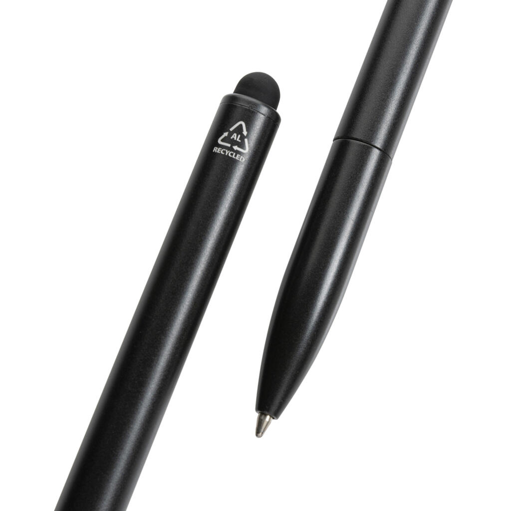 Ручка Kymi сочетает в себе классическую шариковую ручку и стилус для сенсорных экранов. Изготовленная из переработанного алюминия, она получилась легкой, прочной и приятной на ощупь. Такая ручка станет отличным подарком тем, кто заботится о природе: алюминий — уникальный материал, который можно перерабатывать бесконечно. Она удобно сидит в руке и обеспечивает плавное письмо. Стержня с синими немецкими чернилами Documental хватит на 700 метров письма. Сертифицировано RCS. Эта сертификация полностью контролирует путь поставок переработанных материалов и гарантирует их наличие в изделии.