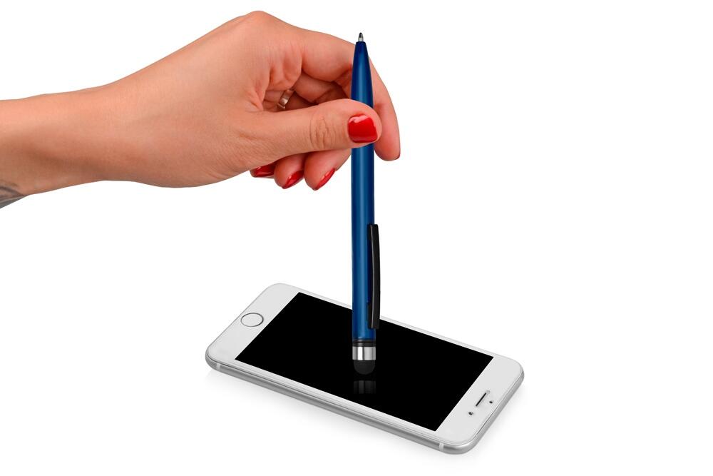 Пластиковая ручка со стилусом. Удачное расположение поворотного механизма предотвращает от случайного появления стержня во время использования стилуса, при этом оставляя большое поле под нанесение на корпусе. Идеальная пара для любого смартфона!