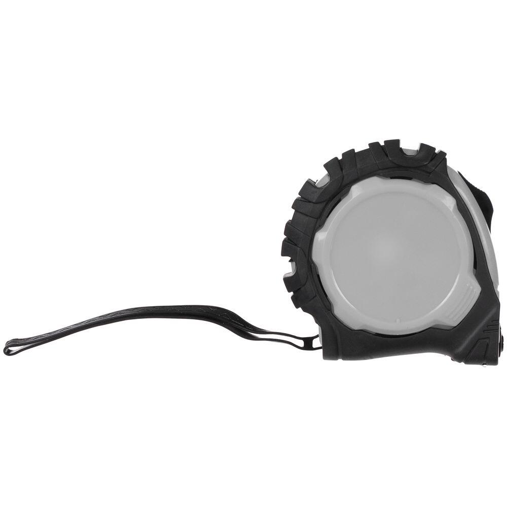 Длина измерительной ленты 5 метров позволяет работать на больших расстояниях. Лента оснащена магнитным наконечником для надежного сцепления с металлическими поверхностями. Корпус рулетки выполнен из прочного пластика с накладкой из ПВХ, которая предотвращает скольжение инструмента в руке.