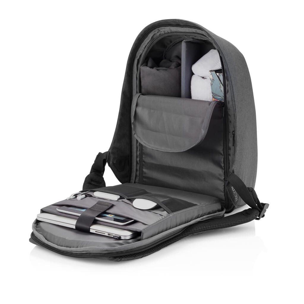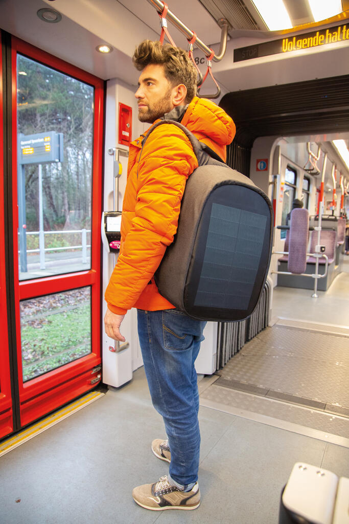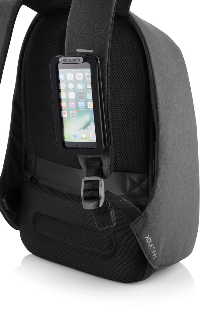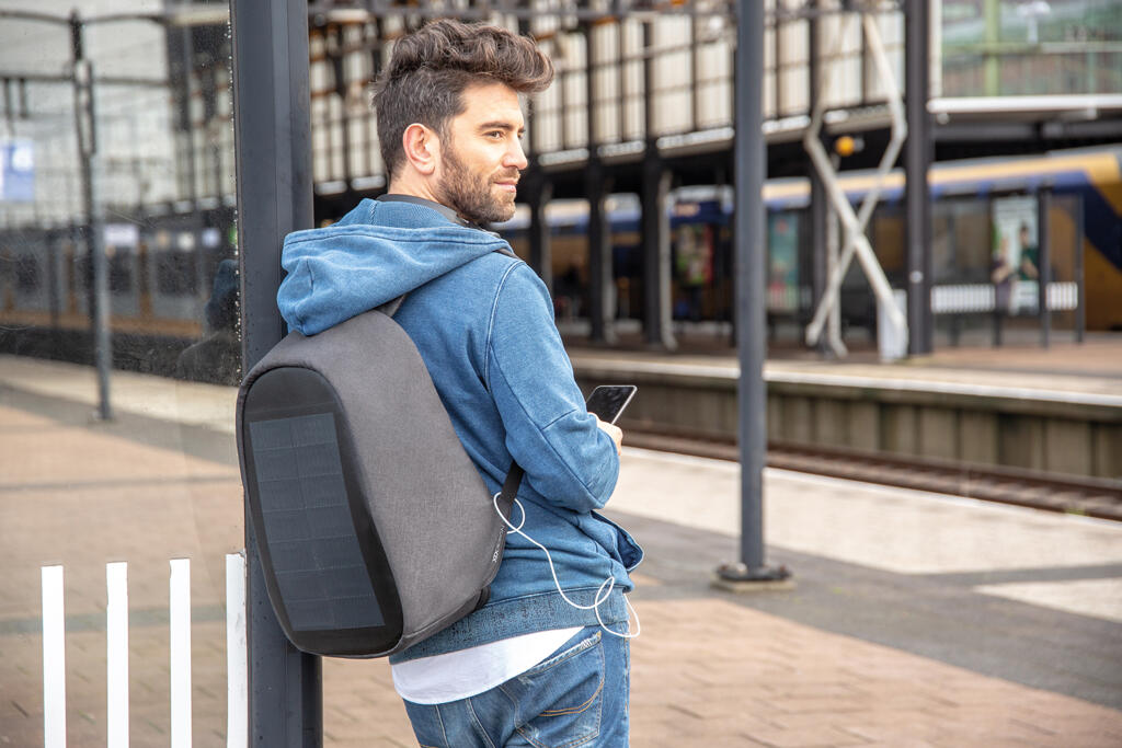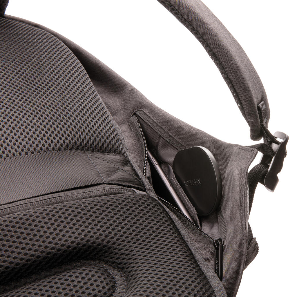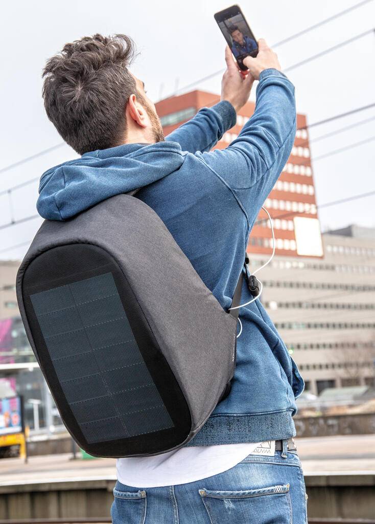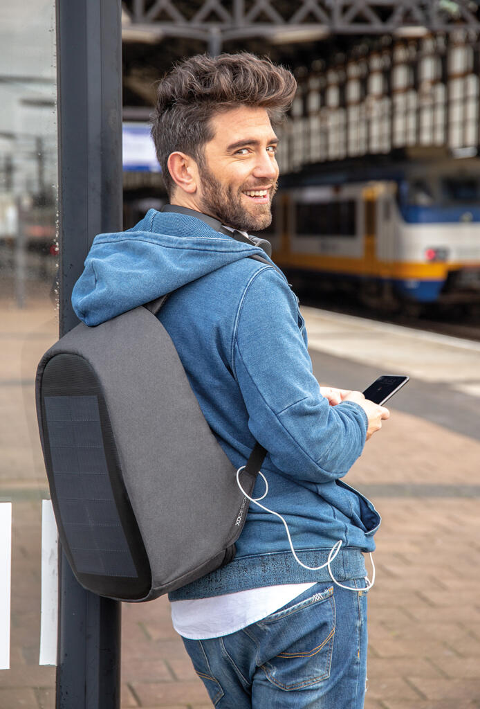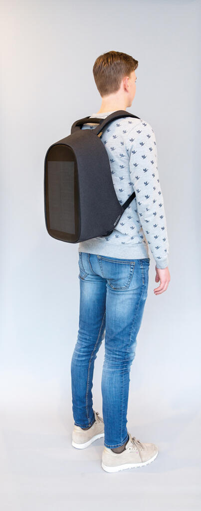 Bobby Tech — идеальный рюкзак для любителей гаджетов, который сочетает в себе безопасность, комфорт и новейшие технологии. Встроенная солнечная панель позволяет заряжать устройства напрямую от солнечной энергии, которая никогда не иссякнет. Вам не понадобится кабель: в рюкзаке есть модуль для беспроводной зарядки. Благодаря наличию внутренних регулируемых перегородок, вы с легкостью сможете удобно расположить все содержимое рюкзака. Запатентованная система блокировки fidlock на плечевом ремне позволит быстро достать телефон, бутылку воды или термокружку. Bobby Tech собрал в себе все оригинальные функции серии Bobby, такие как скрытые молнии, карманы с RFID защитой и PP-пластина, защищающая от прорезаний. Более того, новая модель на 100% экологична, сделана из переработанных пластиковых бутылок. На производство одного Bobby Tech требуется 21 бутылка.