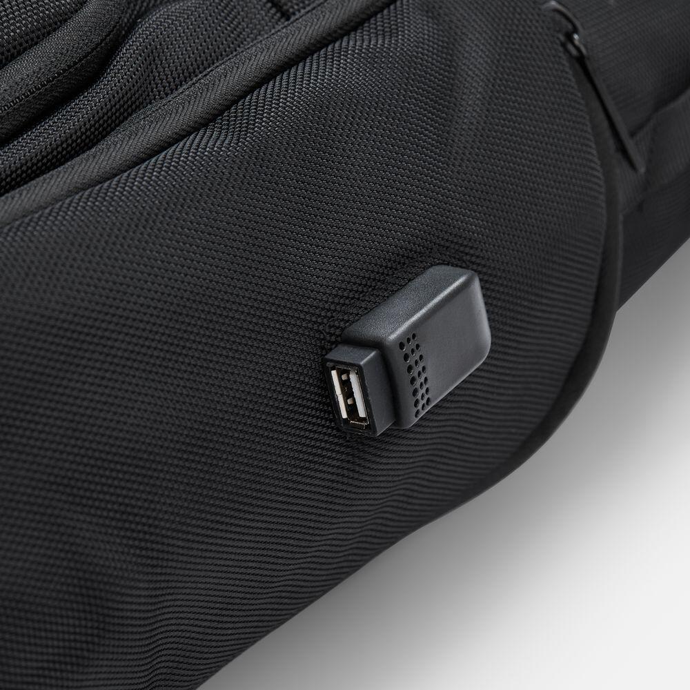 Внешний USB-порт для зарядки гаджетов (внутри бокового кармана — провод для подключения)