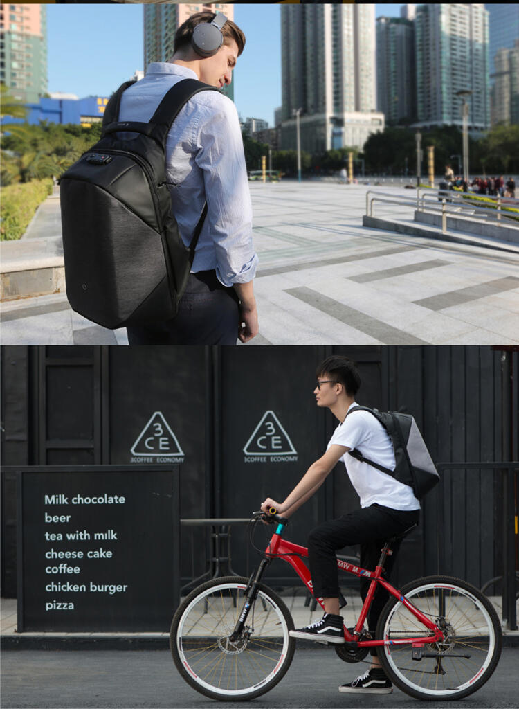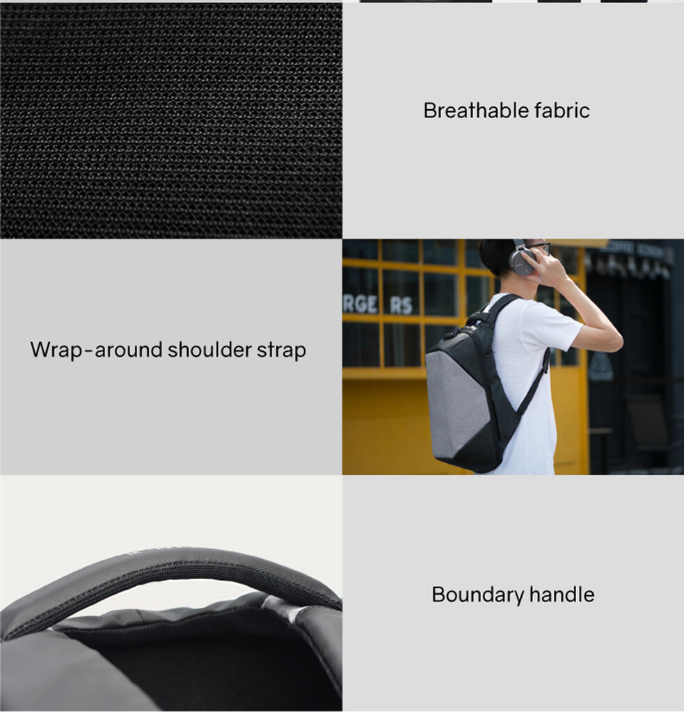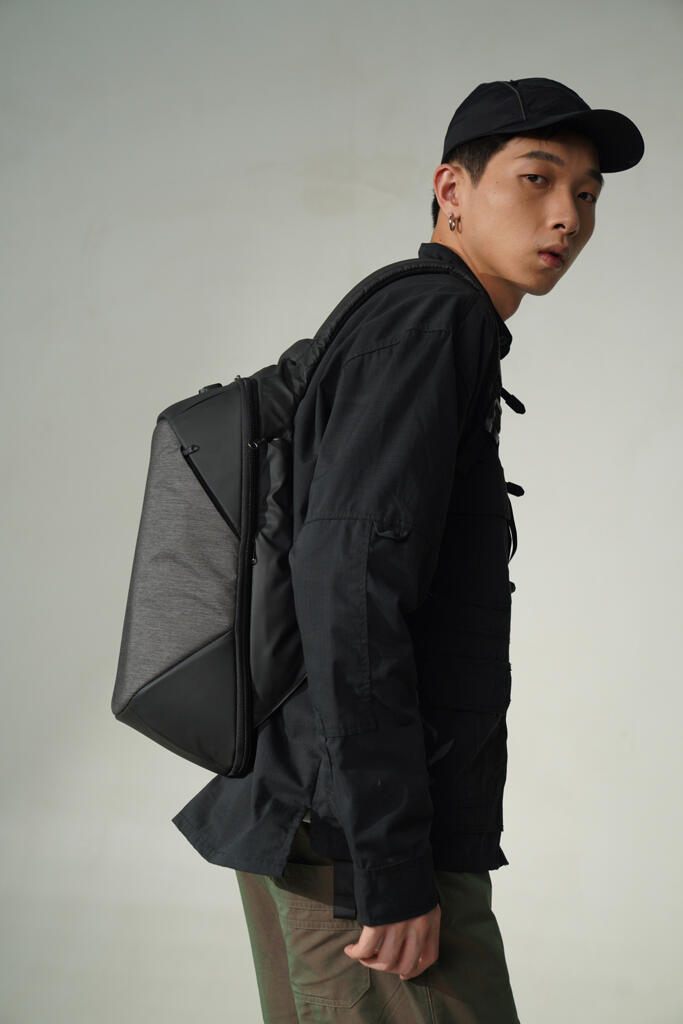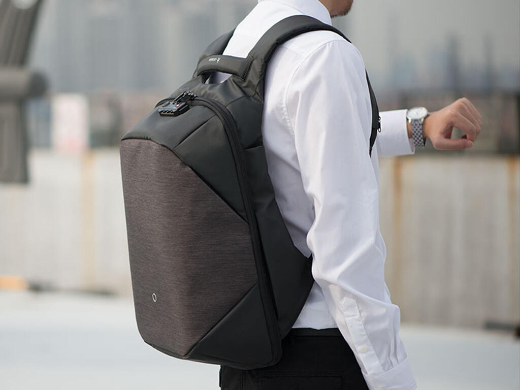 Вместительный рюкзак для путешественников ClickPack из комбинации темно-серого и черного цветов, обладатель премий Good Design Award 2017, Red Dot Design Award 2018, iF Design Award 2018, International Design Excellence Award. Сделан из прочного устойчивого к трению водоотталкивающего многослойного полиэстера, с двухслойной защитой от дождя и не требующего специального ухода. Конструкция достаточно жесткая, не деформируется. Детально продуманная организация отделений позволяет грамотно распределить вес. Самые тяжелые предметы располагаются ближе к спине, например, в отделении для ноутбука диагональю и в кармане для планшета. Благодаря плотным перегородкам и эластичным фиксаторам ноутбук и планшет надежно фиксируются и не перемещаются при ходьбе. Специальная анатомическая конструкция и вентилируемая мягкая спинка снижают нагрузку на плечи и спину, вес рюкзака воспринимается на 20-25% легче, чем при использовании стандартных моделей рюкзаков.