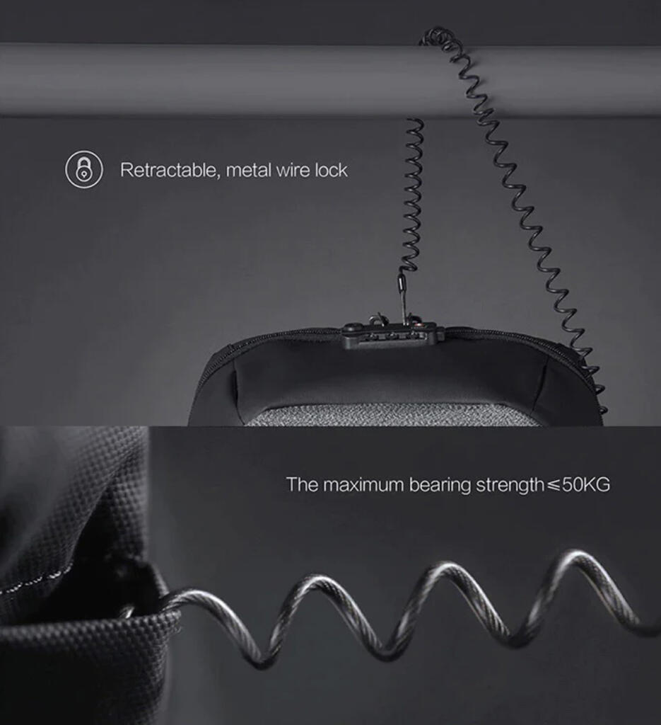 • Стальной трос, которым можно обхватить неподвижный предмет и затем зафиксировать в кодовом замке.